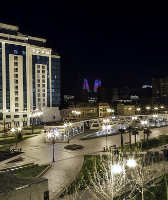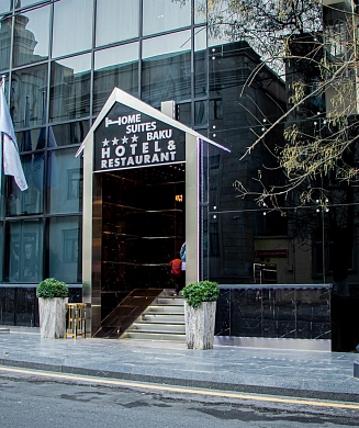 Поездом до ж/д вокзала г. Баку, далее 300 м до остановки «Железнодорожный вокзал / Баку-Пассажирская», далее на автобусе №5 до остановки «Средняя школа №304», далее 400 м до отеля.