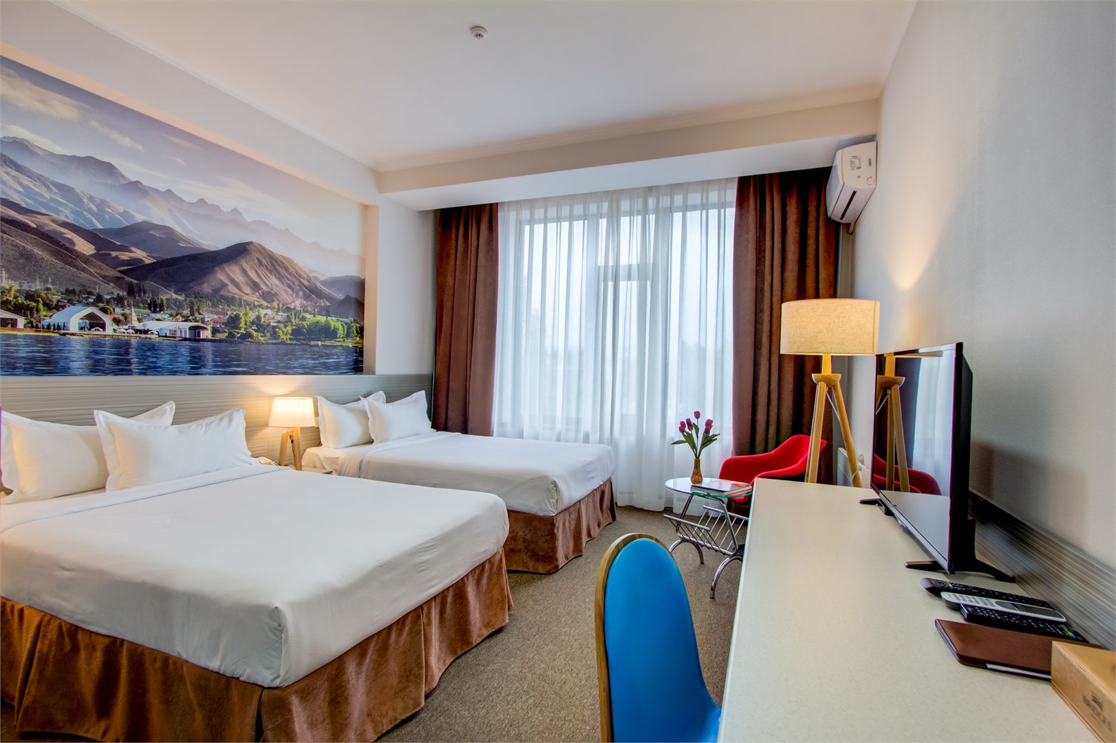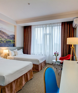В течение всего пребывания можно воспользоваться услугами прачечной. На территории отеля также работает массажный кабинет и сувенирный магазин.Бесплатный Wi-Fi действует во всех номерах, а заказ трансфера осуществляется на стойке регистрации. Для любителей активного отдыха отель предоставляет прокат велосипедов, что позволяет с комфортом исследовать окрестности. Для деловых мероприятий доступен конференц-зал, оснащенный всем необходимым оборудованием. Благодаря удачному расположению гости могут легко добраться до главных достопримечательностей Бишкека и деловых районов города.