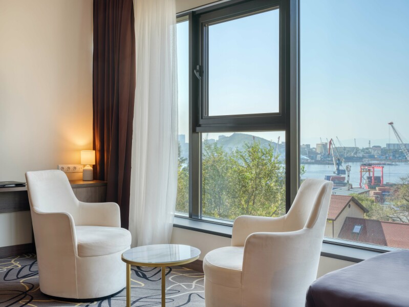 Бутик-отель R-hotel расположен в Первомайском районе Владивостока на берегу бухты Золотой Рог. Рядом — Золотой мост, Мариинский театр, крупные торговые центры, за 5—7 минут можно доехать до центра города, где большое число кафе, ресторанов, бутиков. В 4,5 километрах находится железнодорожный вокзал, а дорога до аэропорта займет менее часа.