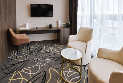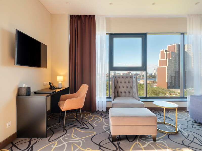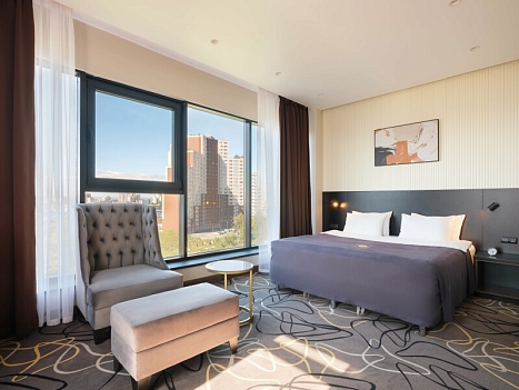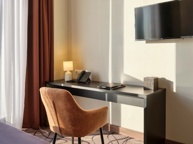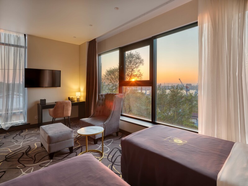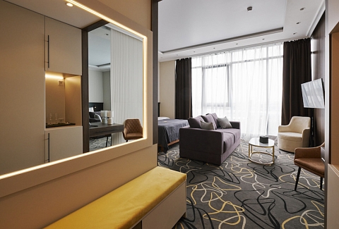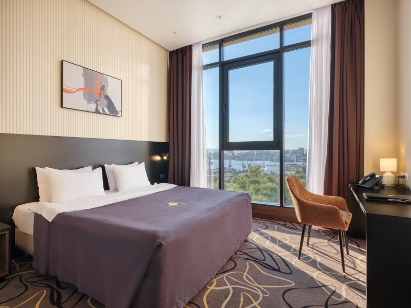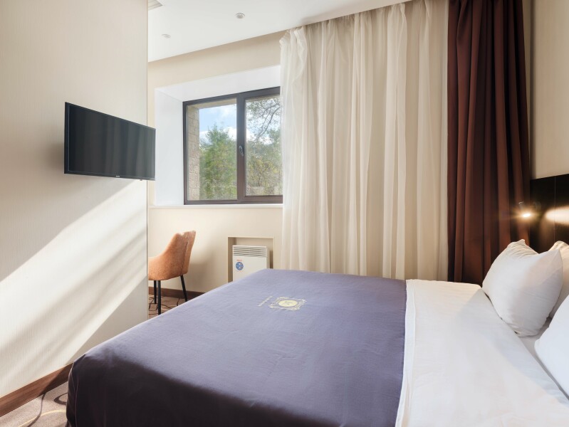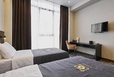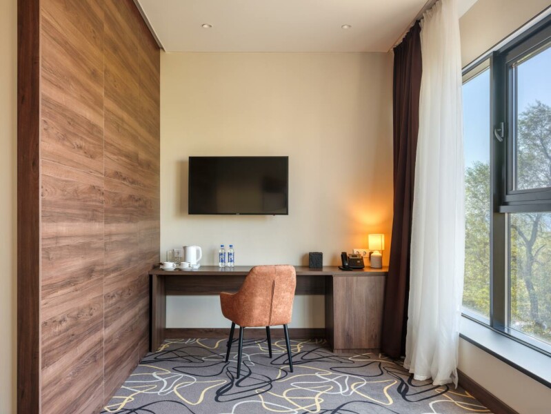 Пятиэтажный корпус отеля разместился в тихом спокойном районе города. В распоряжении гостей номера разных категорий комфорта — есть как стандартные номера, так и просторные Студии. В номерах приятный классический интерьер, везде предусмотрен санузел, в комнатах есть телевизор, кондиционер и система климат-контроля.В отеле работает ресторан, где подаются блюда европейской и русской кухни. В числе удобств — беспроводной интернет, услуги прачечной и парковка.