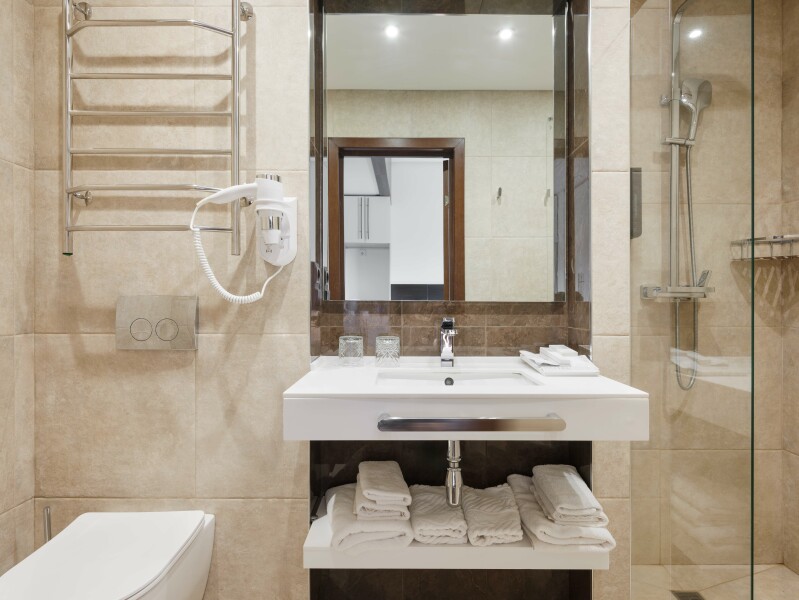 Санузел: с душем, тапочки, фен, халат