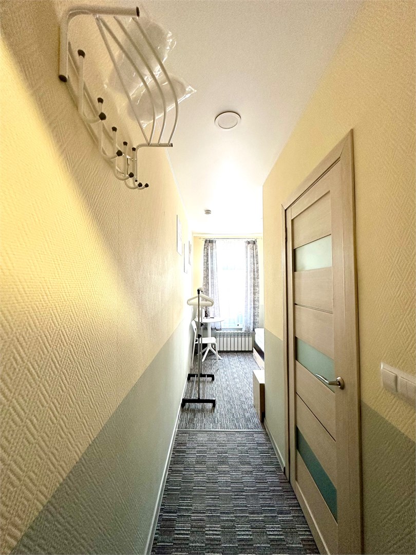 В номере: вешалка, зеркало, кровати односпальные, стол, стулья, тумба, микроволновая печь, мини-холодильник, телевизор, утюг, чайник