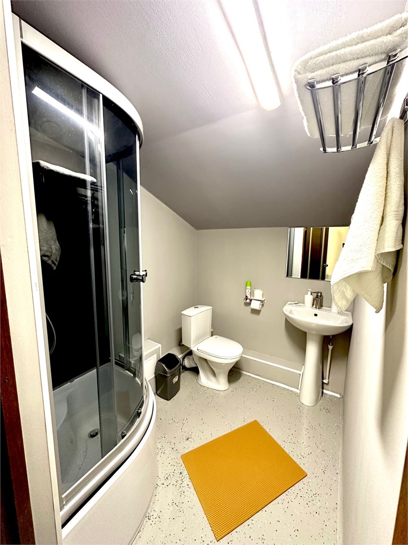 Санузел: с душем, тапочки, туалетные принадлежности, фен