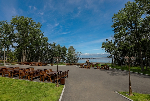 Санаторий разместился в живописном районе Владивостока на берегу Амурского залива рядом с Низководным мостом. Рядом – парк имени С. Лазо, Марфо-Мариинский женский монастырь, удобные транспортные развязки – до центра города можно доехать всего за 15–20 минут, а международный аэропорт находится в 33 километрах.
