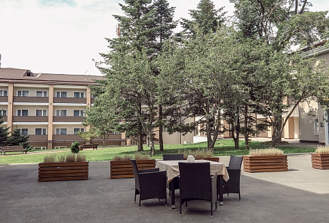 Четырехэтажный корпус санаторий расположен на территории центра отдыха и здоровья Royal Park. В распоряжении отдыхающих одноместные и двухместные номера со всеми удобствами: есть персональный санузел, телевизор, мини-холодильник и электрочайник. В отдельном здании, соединенном теплым переходом с основным корпусом, располагается ресторан «Царский». К услугам гостей банный комплекс с финской сауной, массажной комнатой и двумя бассейнами, есть большой кинозал, где регулярно проходят показы фильмов. В числе прочих удобств – парковка и безлимитный интернет. Для деловых мероприятий предусмотрен конференц-зал, оснащенный необходимой аппаратурой и техникой. Современный медицинский центр санаторий предлагает отдыхающим различные лечебные программы на выбор. А в 20 минутах ходьбы или на расстоянии одной автобусной остановки находится благоустроенный пляж.