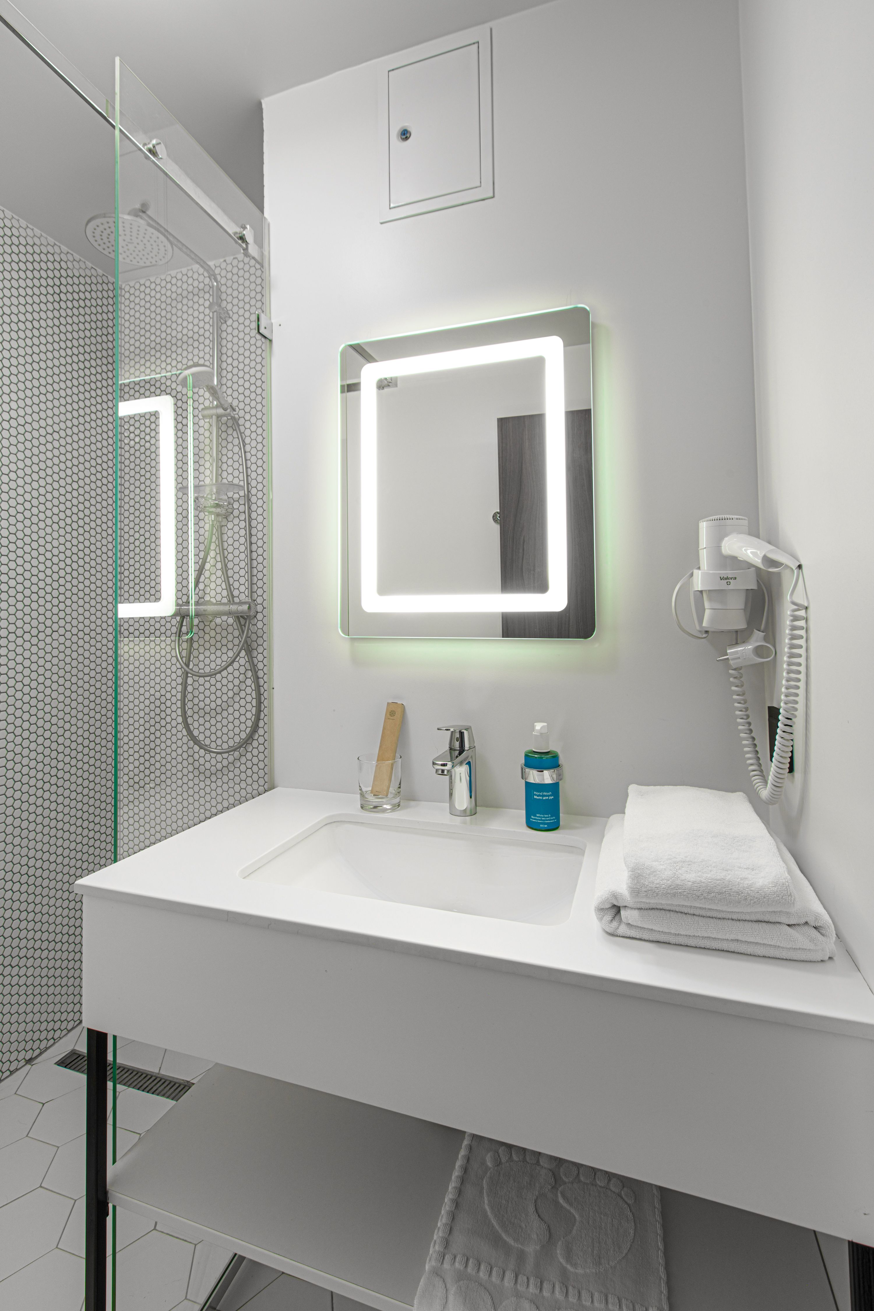 Санузел: с душевой кабиной, тапочки, туалетные принадлежности, фен, халат