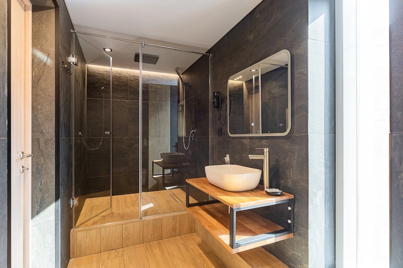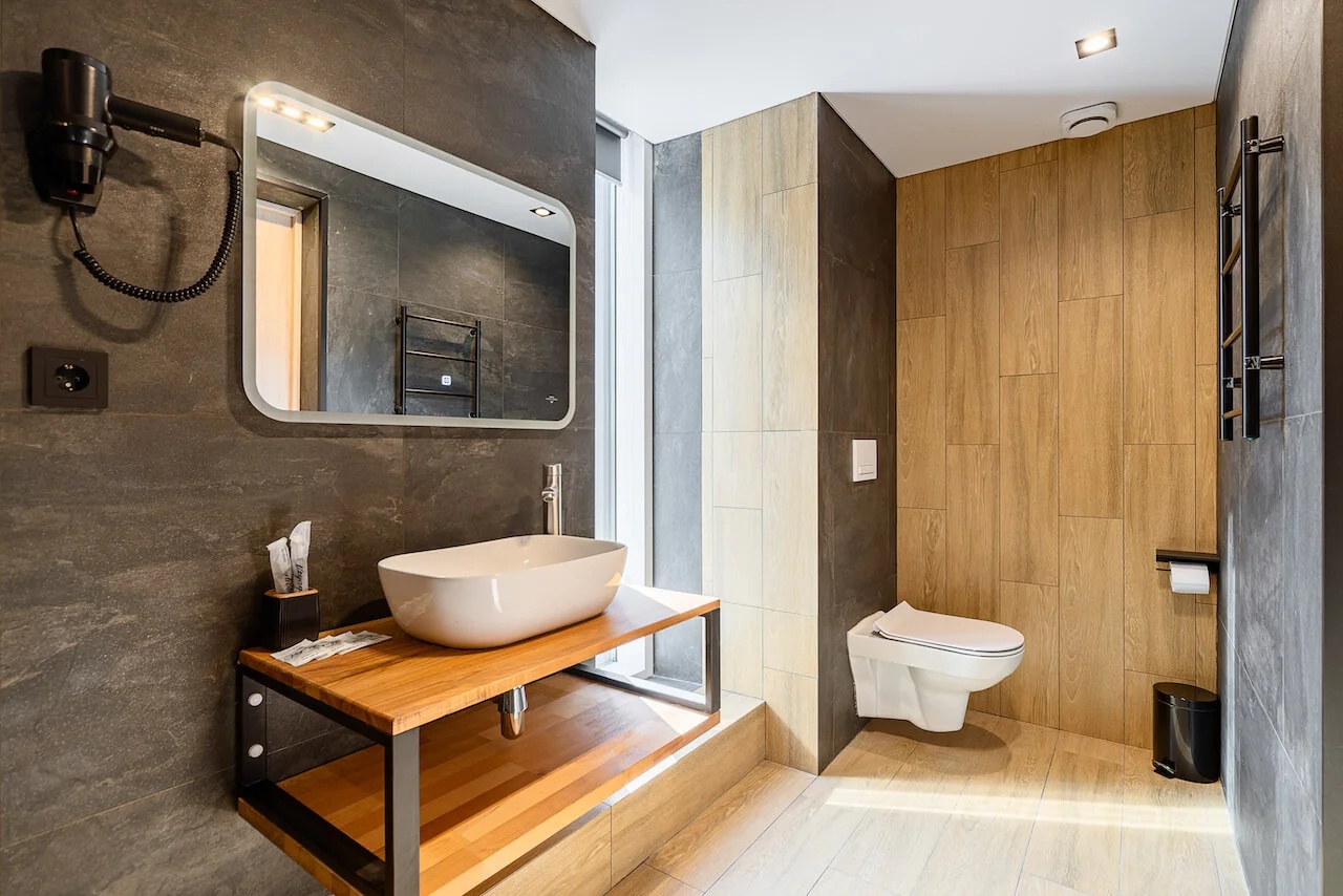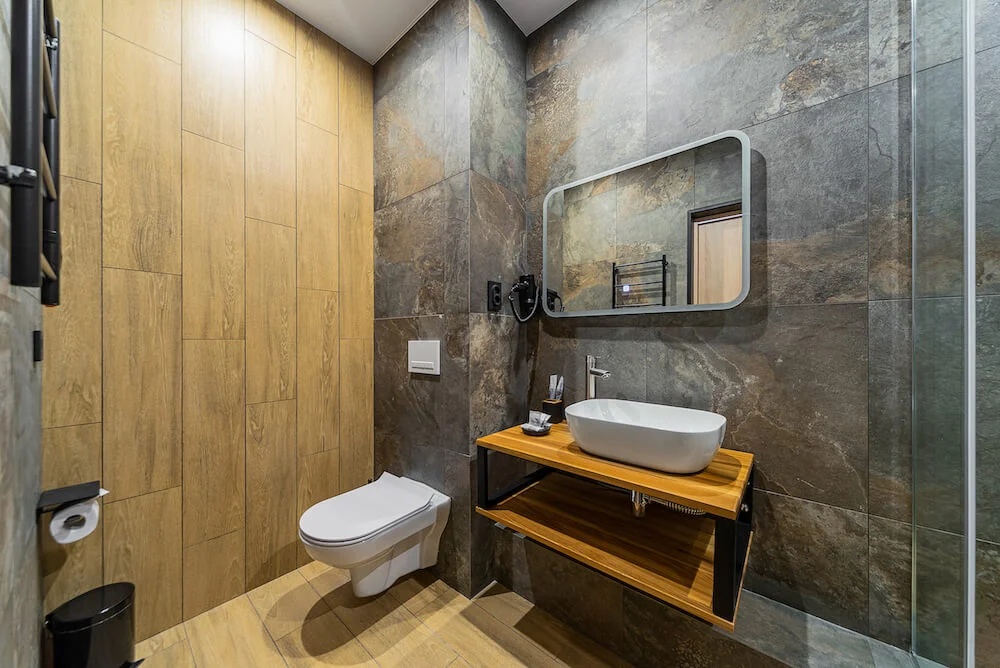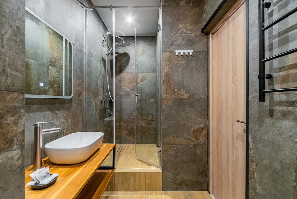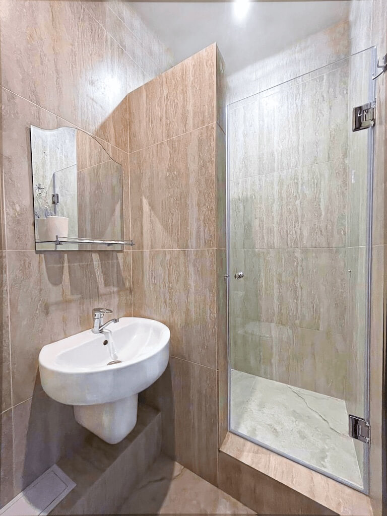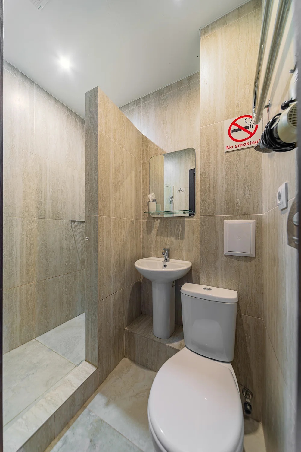 Санузел: с душем, тапочки, туалетные принадлежности, фен