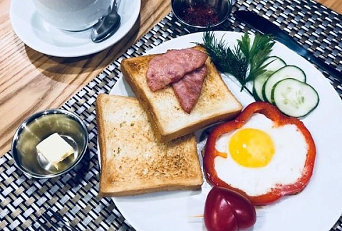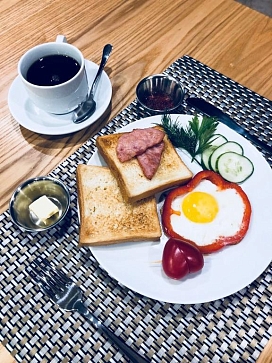 В номере: вешалка, зеркало, кровать двуспальная, прикроватные тумбочки, шкаф, гладильная доска, кондиционер, мини-холодильник, телевизор ЖК, утюг, чайный набор посуды, электрочайник