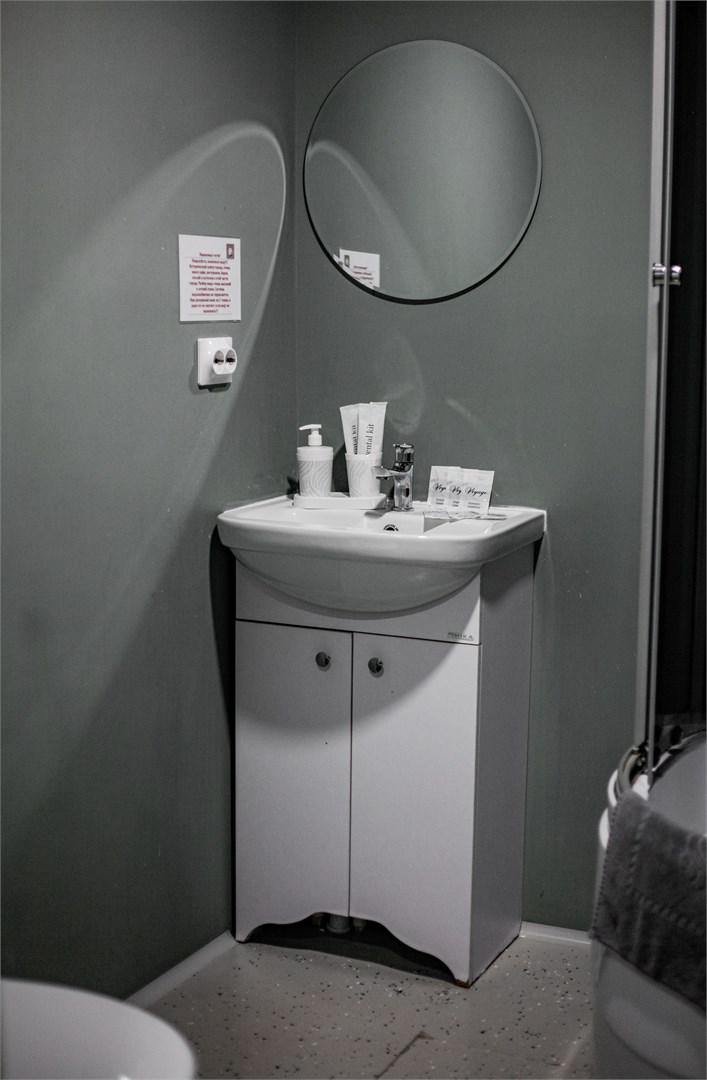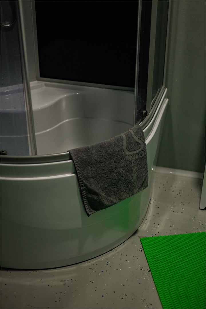 Санузел: с душевой кабиной, тапочки, туалетные принадлежности, фен