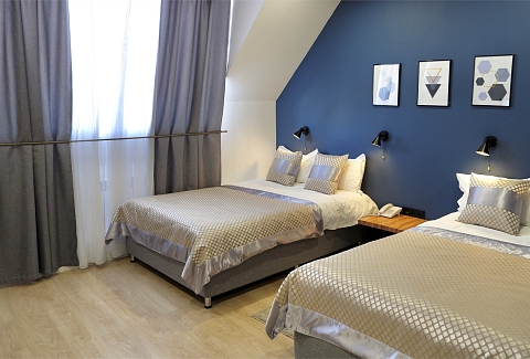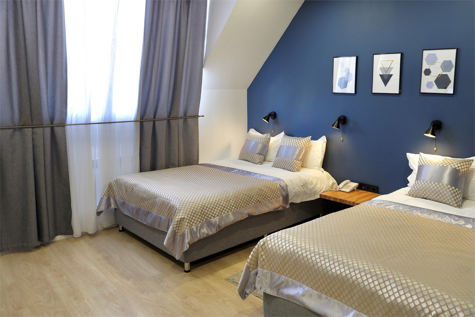 В номере: кровати односпальные /одна двуспальная кровать, прикроватные тумбочки, стол, стулья, шкаф, кондиционер, телевизор