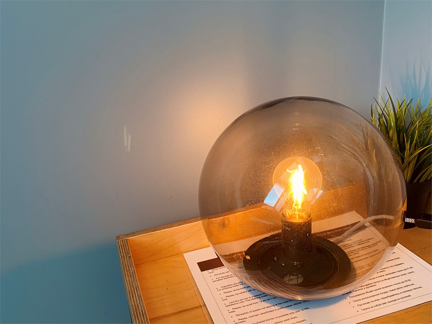 В номере: кровать двуспальная, прикроватные тумбочки, стол, стулья, шкаф, кондиционер, мини-холодильник, телевизор, телефон