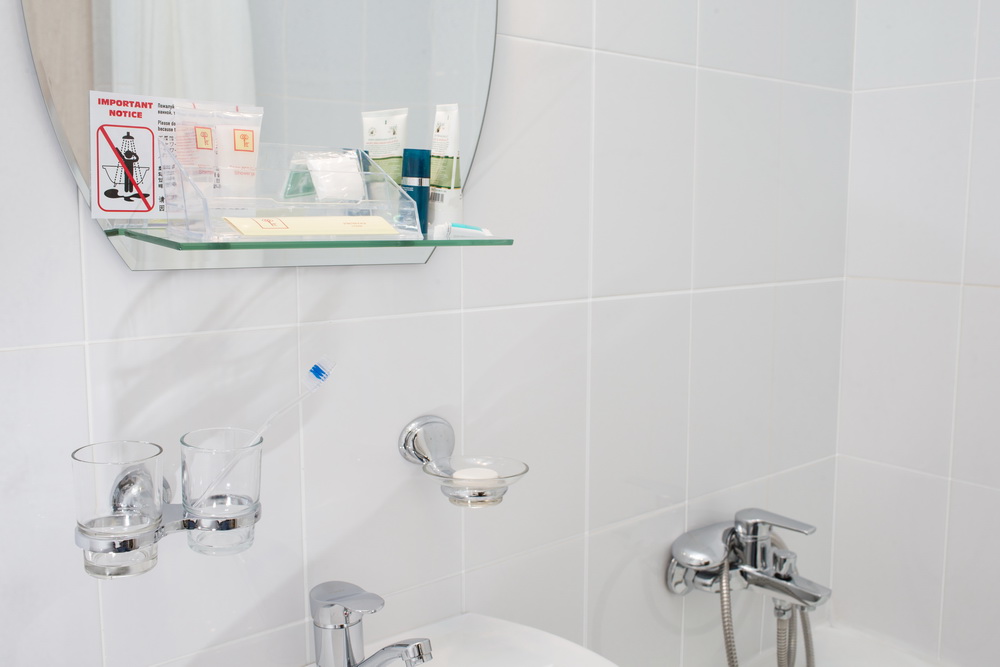 Санузел: с душем, тапочки, туалетные принадлежности, фен