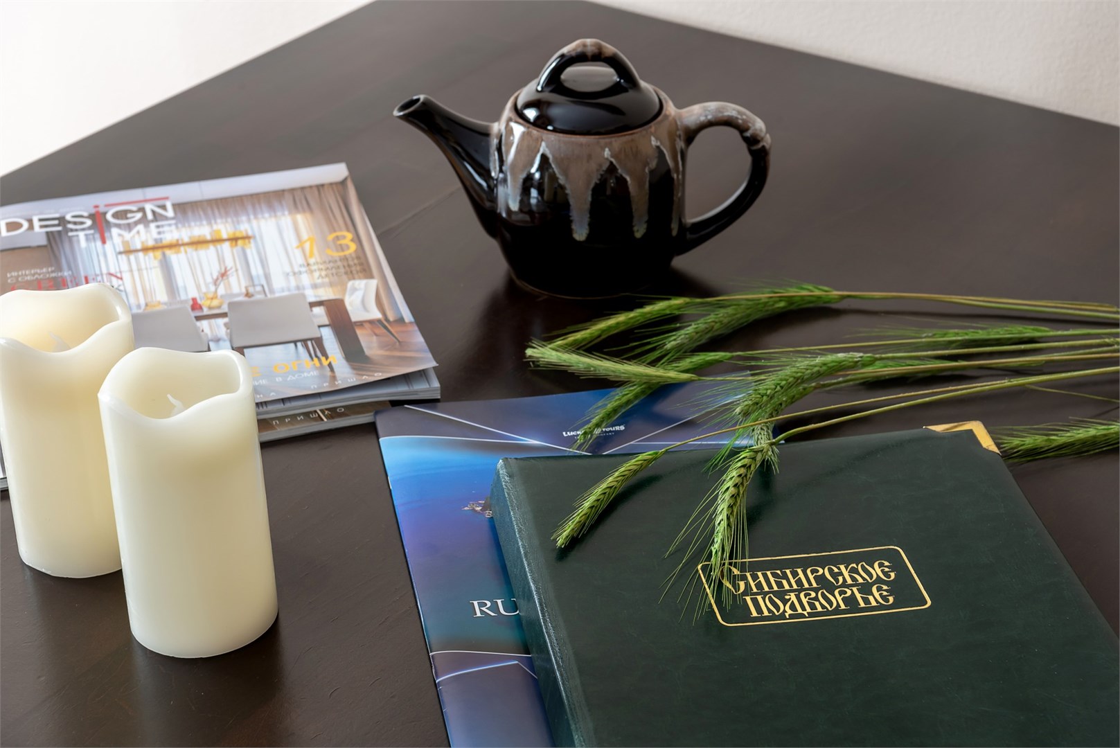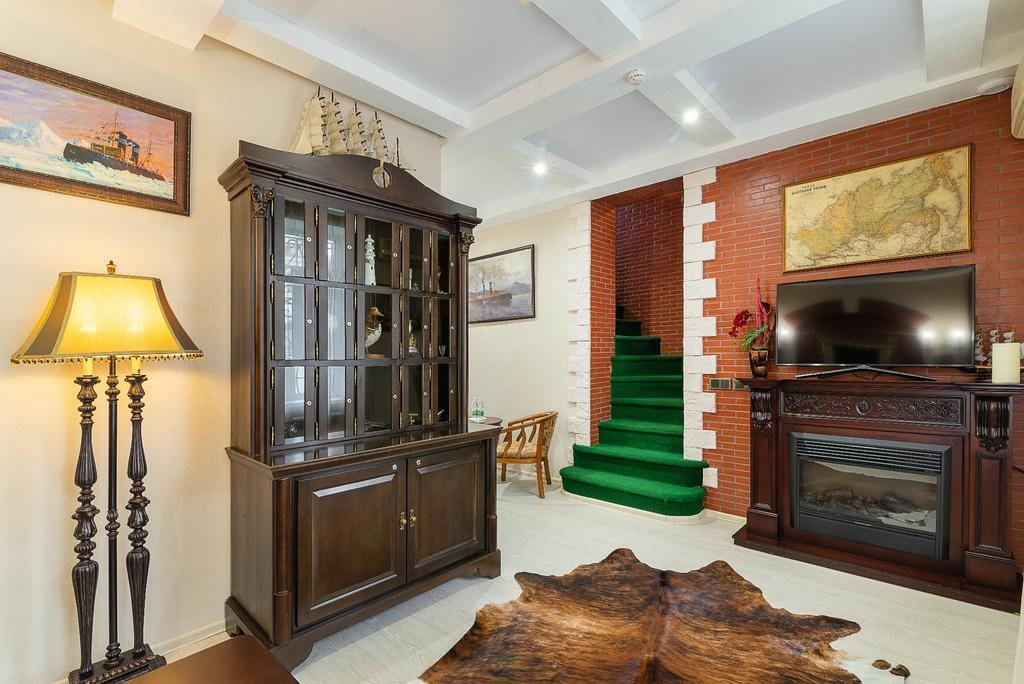 В номере: вешалка, зеркало, кровать двуспальная, набор мягкой мебели, прикроватные тумбочки, стол, стулья, шкаф, камин, кондиционер, микроволновая печь, мини-холодильник, набор посуды, плита электрическая, телевизор, телефон, чайный набор посуды, электрочайник
