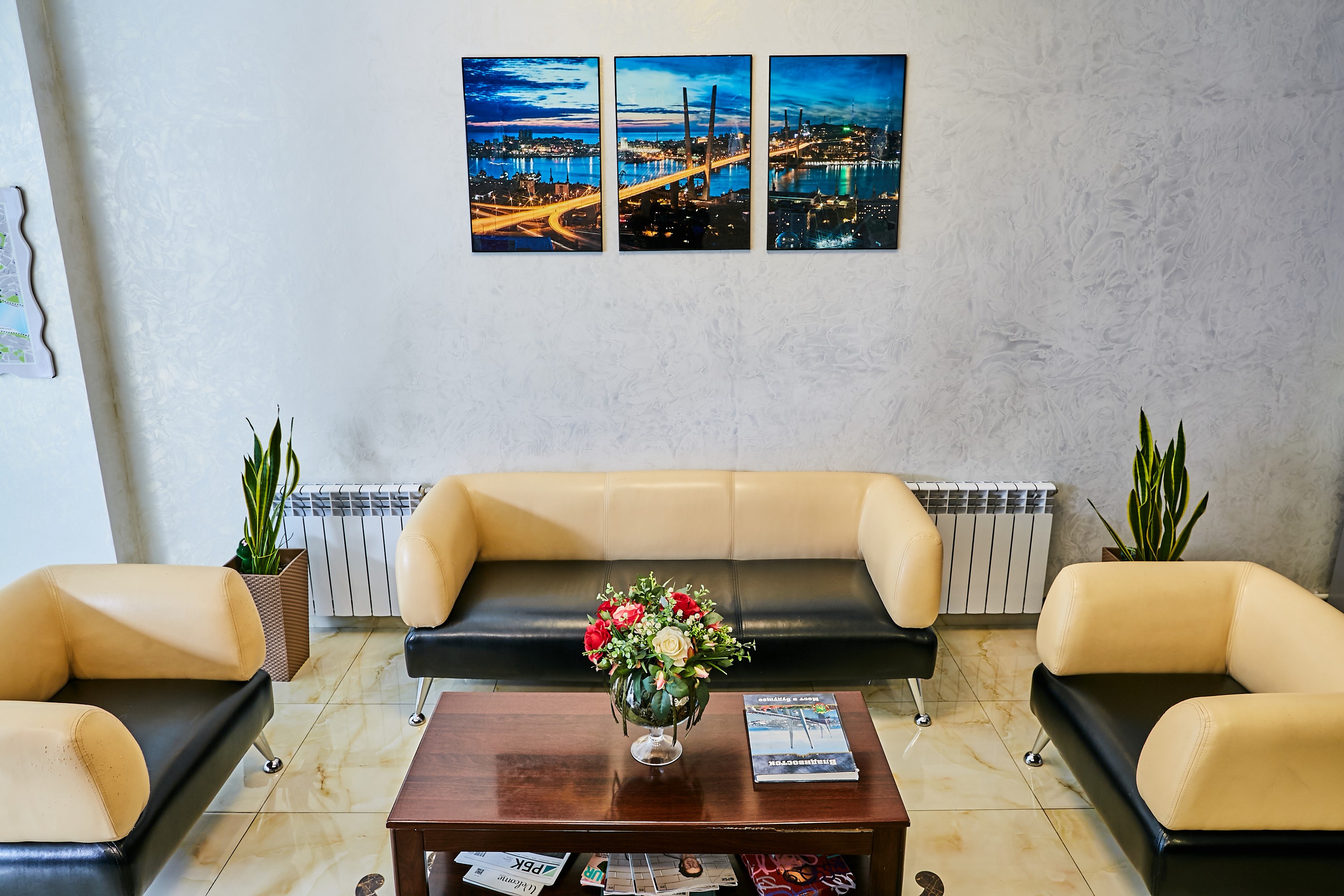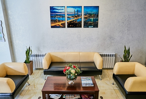 Поездом до ж/д вокзала г. Владивосток, далее на автобусе №31 (13, 39д, 49, 62) от ост. «Железнодорожный вокзал» до ост. «Площадь Борцов Революции», далее пешком 650 м до отеля
