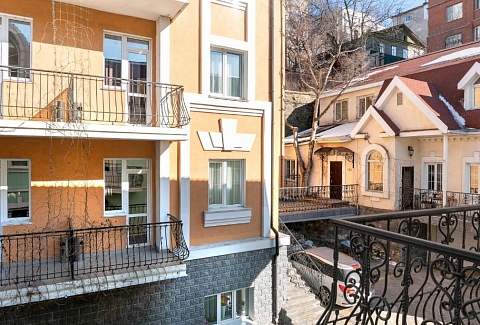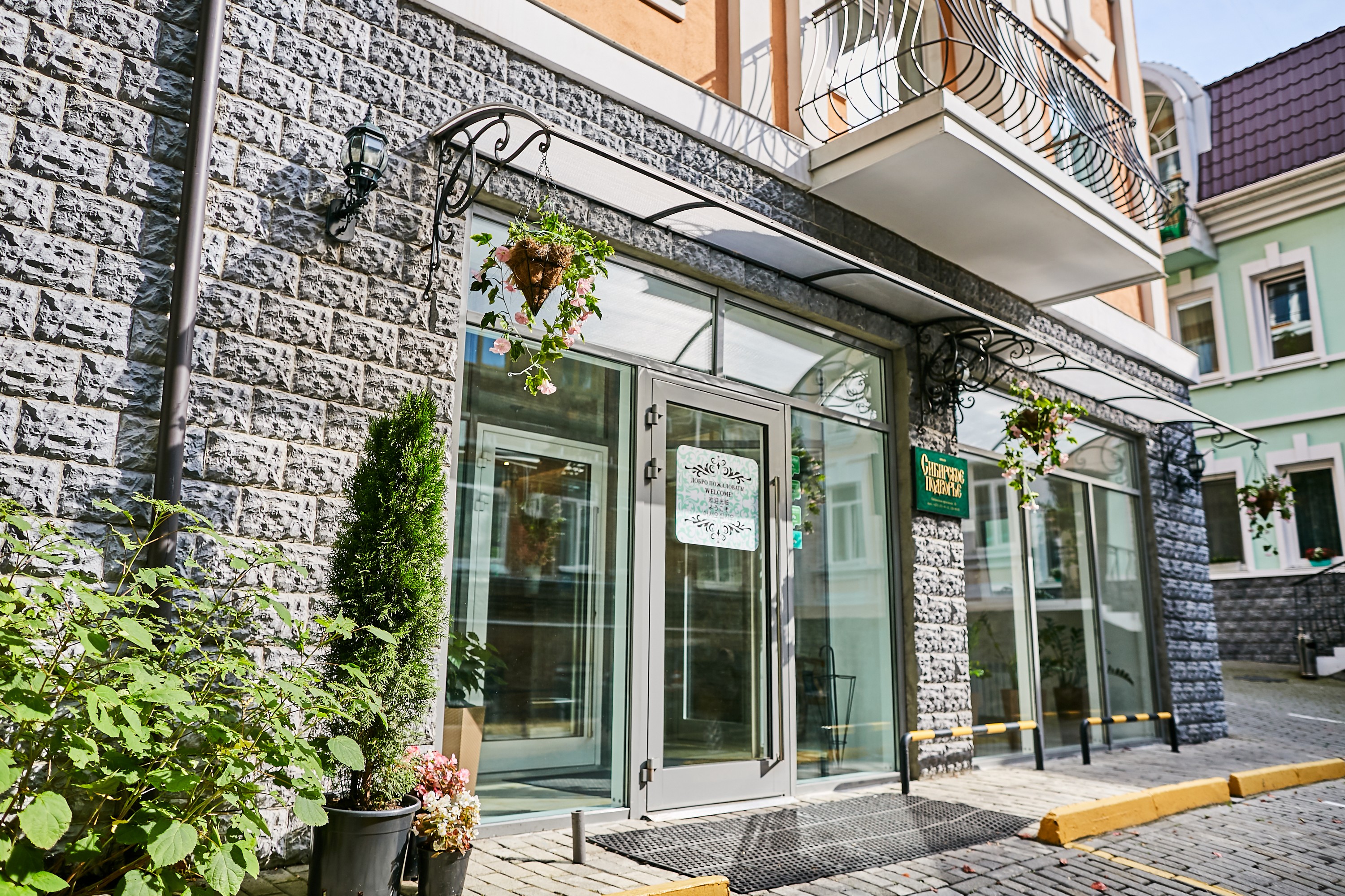 Трехзвездочный отель «Сибирское подворье» расположен в центральной части Владивостока на берегу Спортивной гавани. В шаговой доступности побережье Амурского залива, исторический центр и главные достопримечательности города: Владивостокская крепость, океанариум, военно-исторический музей. Рядом с отелем большой выбор кафе и ресторанов много продуктовых и сувенирных магазинов, есть несколько кинотеатров и парков.Трехэтажный корпус отеля размесился на красивой улице среди исторической застройки.