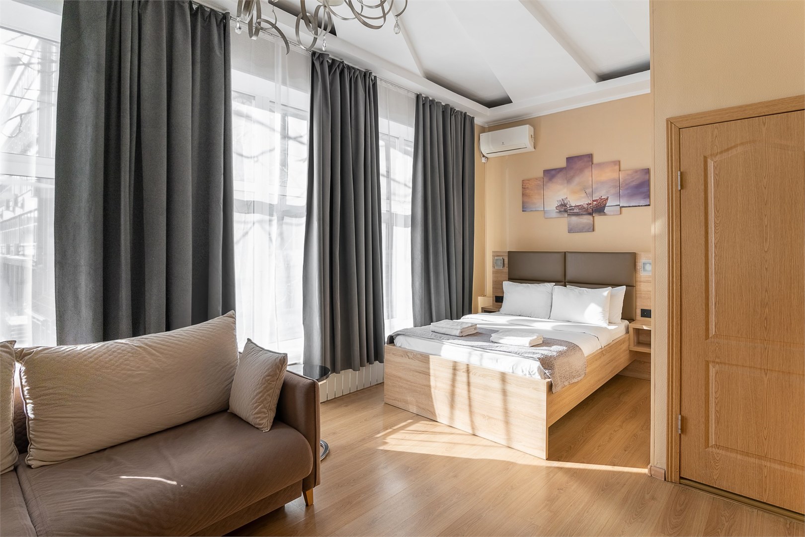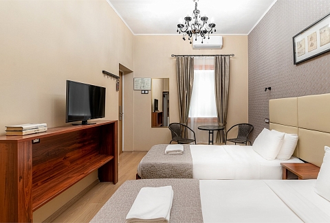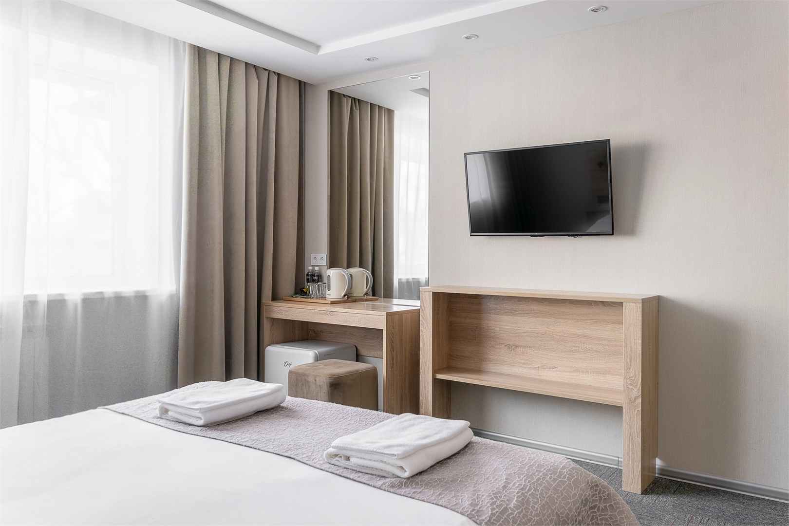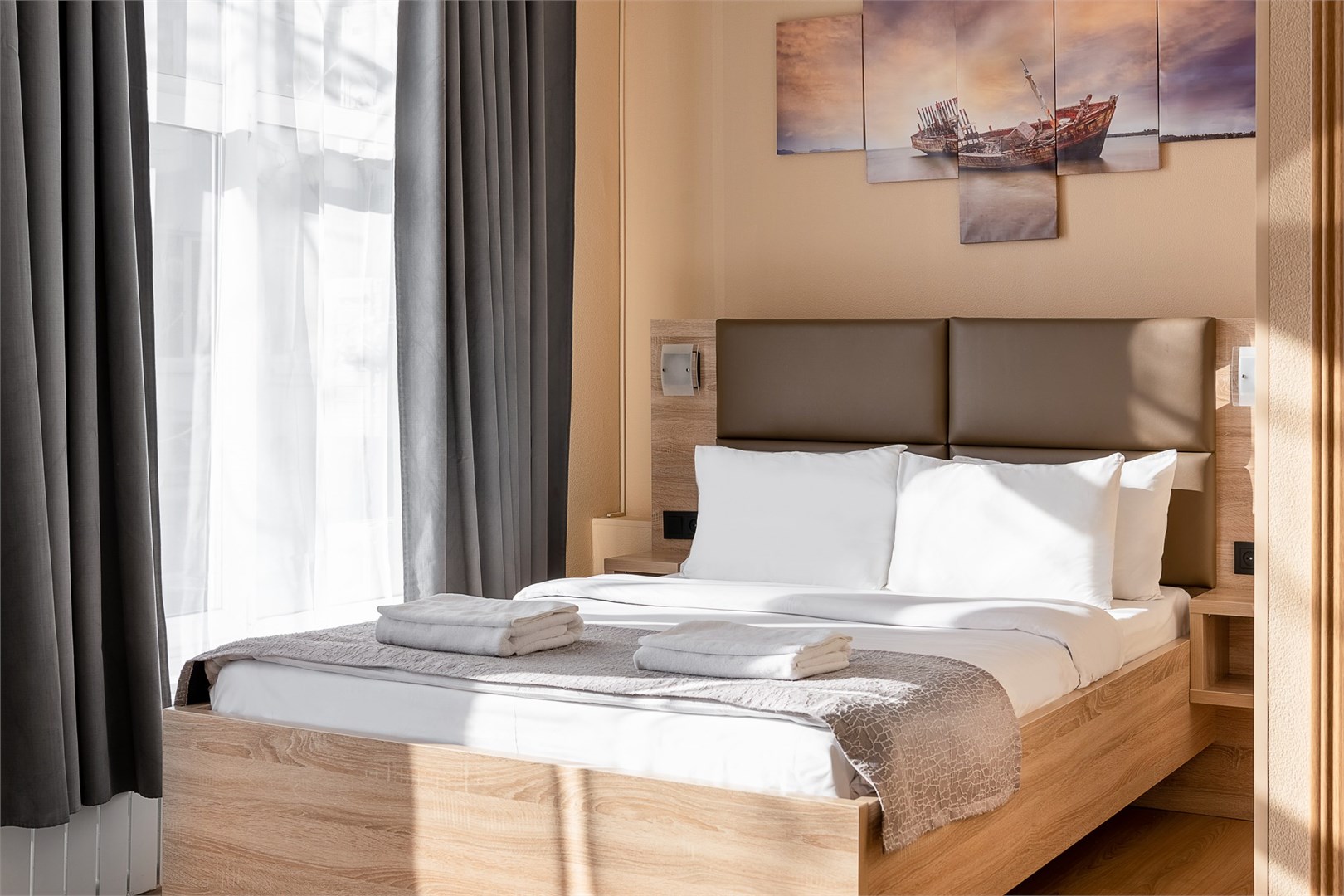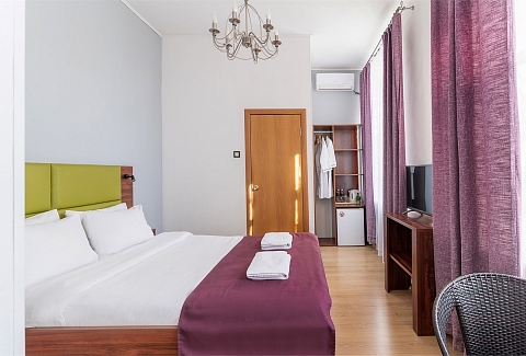 Отель расположен рядом с основными достопримечательностями и отлично подойдет тем, кто хотел бы изучить город. Для тех, у кого в приоритете деловые вопросы, отлично подойдут номера Superior с удобным рабочим местом и стабильным Wi-Fi.В номерах Deluxe есть дополнительное спальное место, а в лобби отеля предусмотрена общая кухонная зона, оснащенная всем необходимым для приготовления несложных блюд. Администраторы помогут решить любой вопрос: подскажут, где провести вечер и что в первую очередь посмотреть в городе, разбудят на ранний рейс или помогут заказать билеты на спектакль.