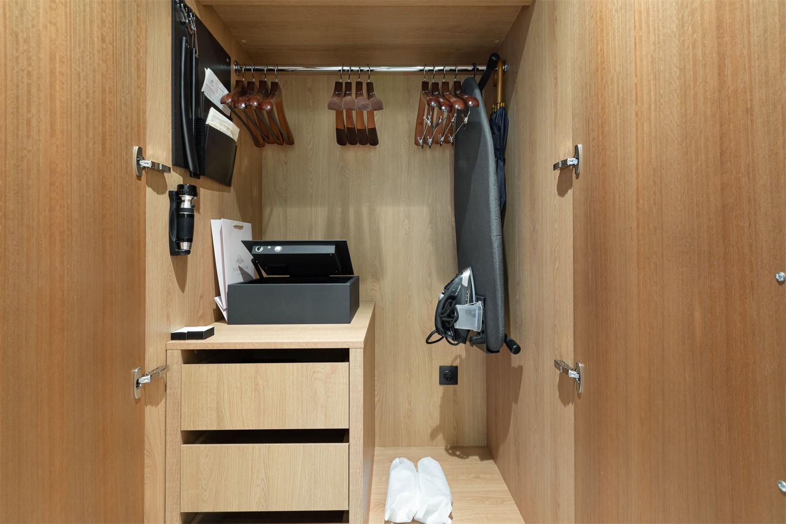 В номере: вешалка, диван, зеркало, кровать двуспальная, прикроватные тумбочки, стол, стулья, шкаф, кондиционер, кофемашина, сейф, телевизор, телефон, утюг, чайный набор посуды, электрочайник