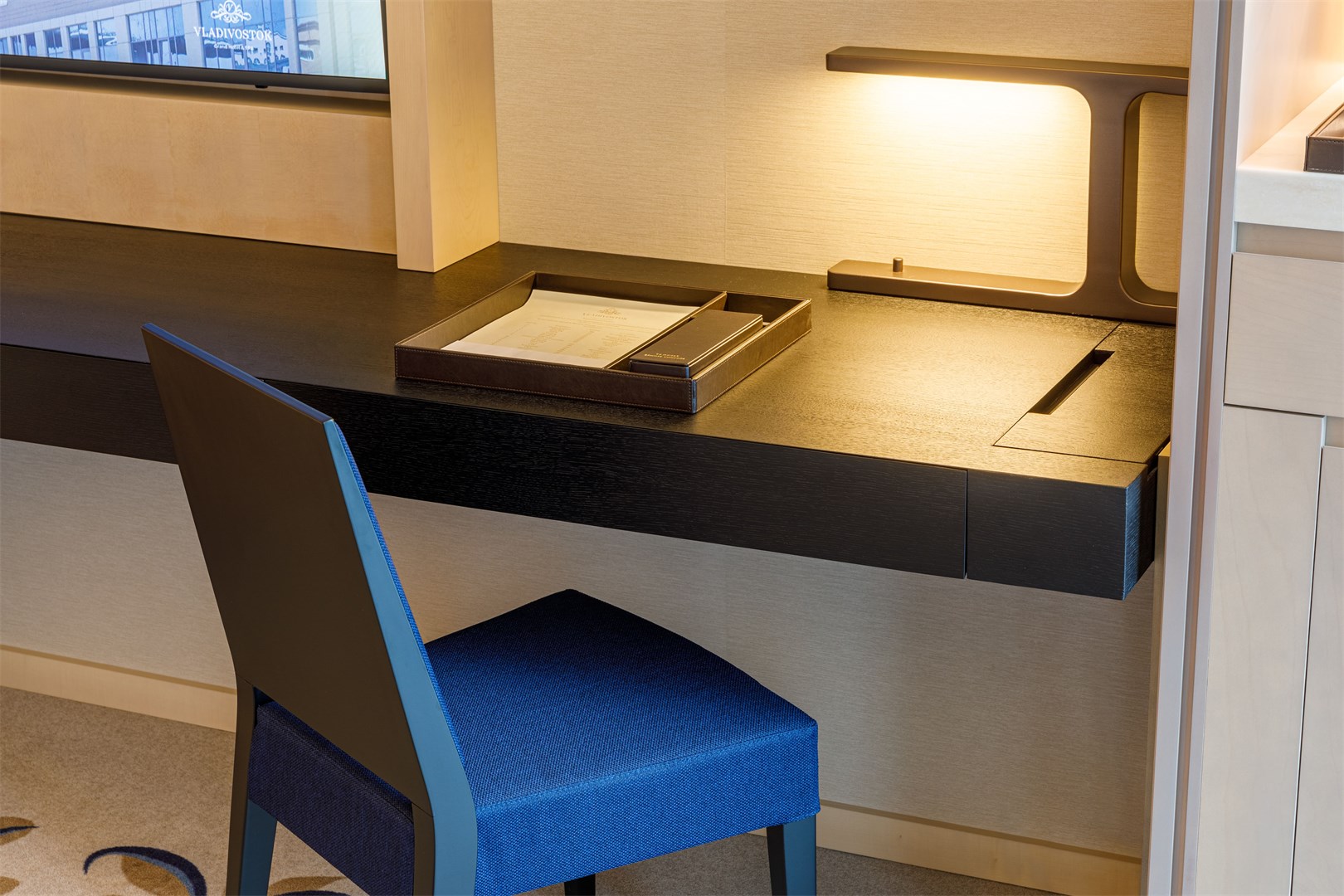 Меню представлено блюдами авторской кухни с яркими локальными акцентами. Лобби-бар «Сапфир» приглашает гостей Отеля насладиться приятной живой музыкой и широким выбором премиальных напитков.Отель удобно расположен на Корабельной набережной, в престижной локации исторического центра Владивостока, где сосредоточены основные достопримечательности.В пяти минутах от отеля, в непосредственной близости от грандиозного вантового моста через бухту Золотой Рог, расположена набережная Цесаревича – одна из самых популярных точек притяжения для прогулок и отдыха во Владивостоке.