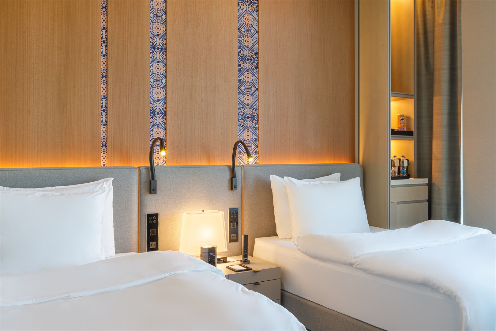 В номере: вешалка, зеркало, кровати односпальные, прикроватные тумбочки, стол, стулья, шкаф, гладильная доска, сейф, сплит-система, телевизор ЖК, телефон, утюг, чайный набор посуды, электрочайник