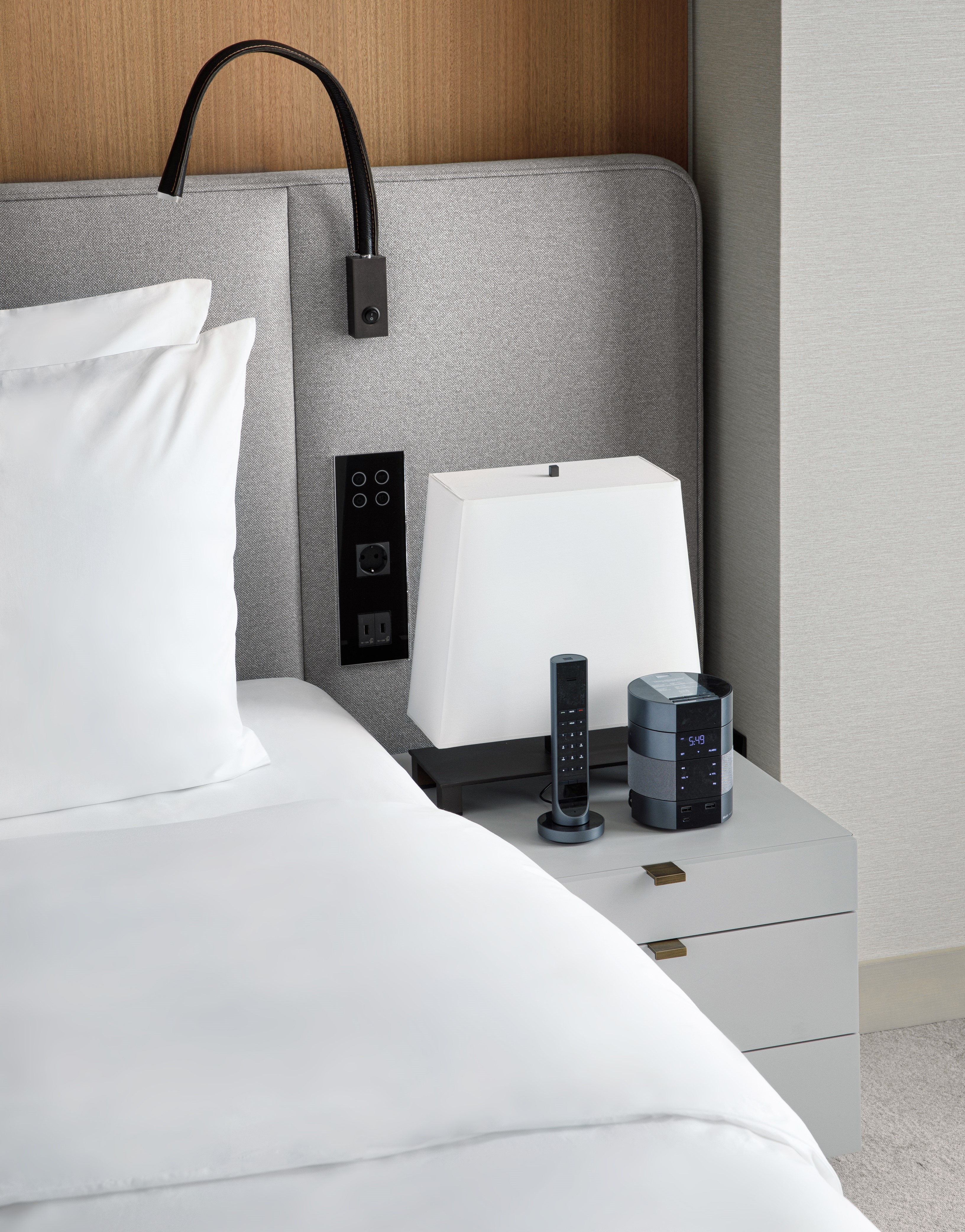 В номере: вешалка, зеркало, кровать двуспальная, прикроватные тумбочки, стол, стулья, шкаф, гладильная доска, кондиционер, кофемашина, сейф, телевизор, телефон, утюг, чайный набор посуды, электрочайник