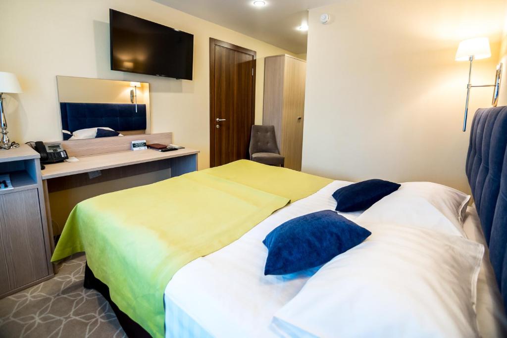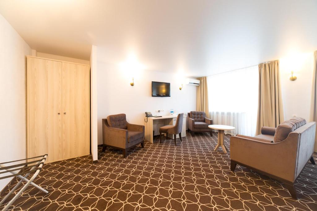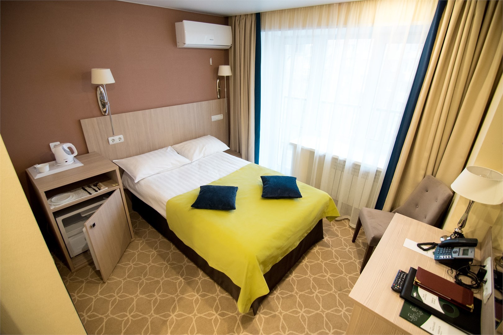 Дорога до международного аэропорта займет около часа.Шестиэтажное здание отеля, оснащенное двумя лифтами, занимает небольшую охраняемую территорию. Жилой фонд, рассчитанный на единовременное размещение более 160 гостей, состоит из номеров категории Стандарт и Джуниор. Номера оборудованы собственным санузлом с душевой, оснащены современной техникой — в каждой комнате есть телевизор-ЖК, электрочайник, холодильник, кондиционер. На первом этаже отеля ежедневно работают ресторан "20 Крабов" с европейской кухней и лобби бар. Для проведения деловых мероприятий в отеле предусмотрены конференц-зал, вмещающий 62 человек, и бизнес-центр, рассчитанный на 12 гостей. И в бизнес-центре, и в зале есть вся необходимая мультимедийная техника — проекторы, ноутбуки, звуковая аппаратура, а также экран, флип-чарт.