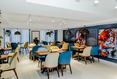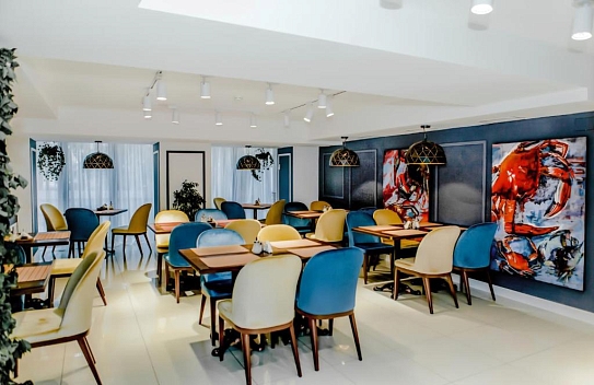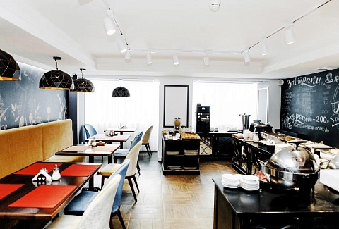 - основной ресторан 1-ый этаж гостиницы, европейская кухня; время работы: с 07-30 до 22-00, будни (выходные: с 08-30 до 22-00)