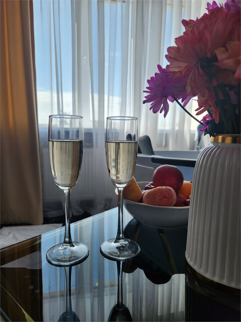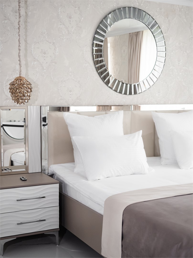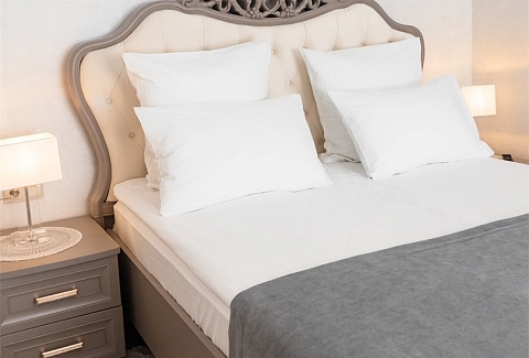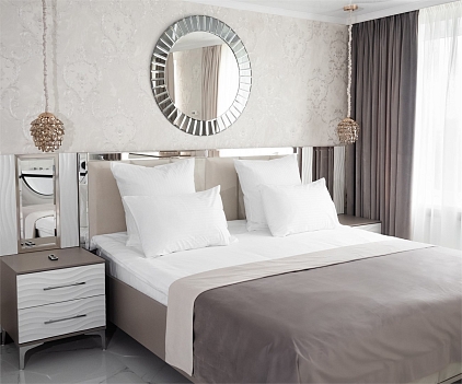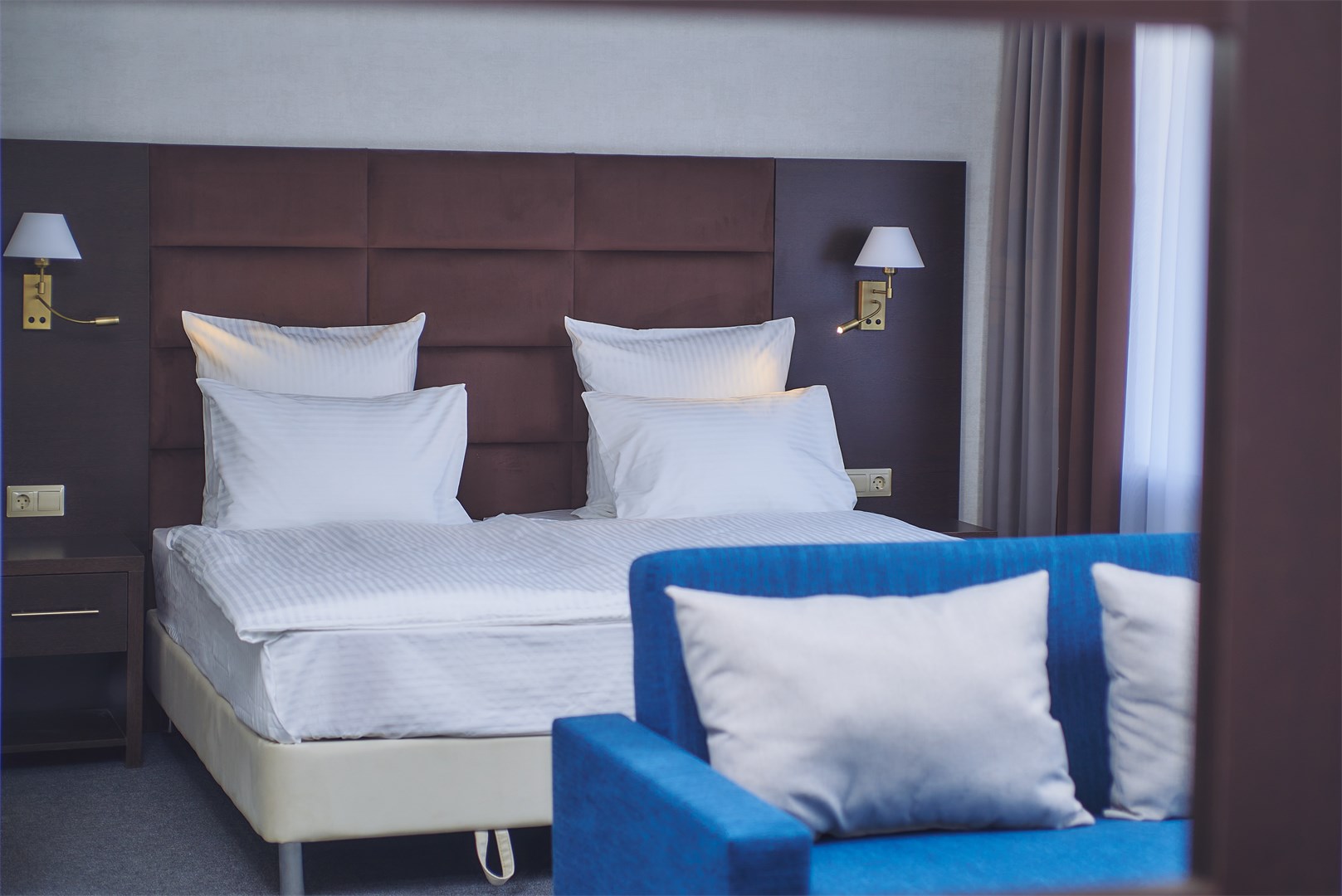 В номере: вешалка, диван, зеркало, кровать двуспальная, прикроватные тумбочки, стол, стул, шкаф, кондиционер, мини-холодильник, сейф, телевизор, телефон, чайный набор посуды, электрочайник