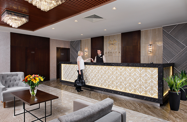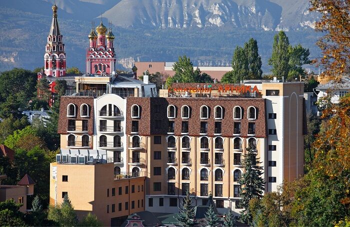 Восьмиэтажное современное здание, оснащенное лифтом, возвышается на пересечении улиц Дзержинского и Герцена. Санаторий предлагает гостям 79 номеров повышенной комфортности, рассчитанных на единовременное размещение 160 человек. Гостей ожидают просторные Апартаменты и Студио с кухней и номера Люкс, Джуниор, Стандарт. Все номера оснащены сплит-системой, в каждом есть необходимая бытовая техника — телевизор-ЖК, электрочайник, холодильник, фен. На восьмом этаже для гостей работает ресторан с панорамными видами, там можно заказать завтраками, обеды, ужины и полюбоваться городом с высоты. В распоряжении отдыхающих спа-центр с термальным комплексом и крытым 14-ти метровым бассейном. Гостям доступны услуги прачечной, беспроводной интернет и охраняемая парковка возле корпуса. Санаторий «Арника» в Кисловодске ориентированный на лечение заболеваний органов дыхания, сердечно-сосудистой и нервной системы, оснащен современной лечебно-диагностической базой и новейшим медицинским и лабораторным оборудованием. В здравнице отдыхающие могут пройти полное функциональное обследование и получить лечение, с применением современных методов, основанных на медицинских и косметологических технологиях. Гостей ожидают сеансы бальнеотерапии с нарзанными, хвойным, жемчужными ваннами, грязевые аппликации, ингаляции и орошения минеральной водой.