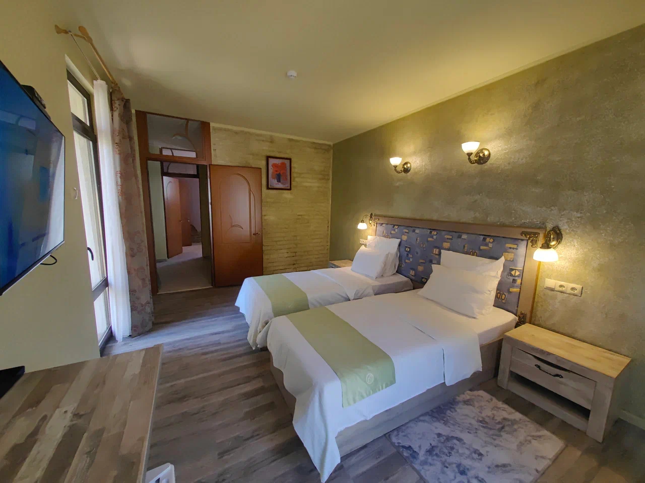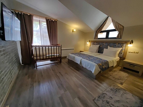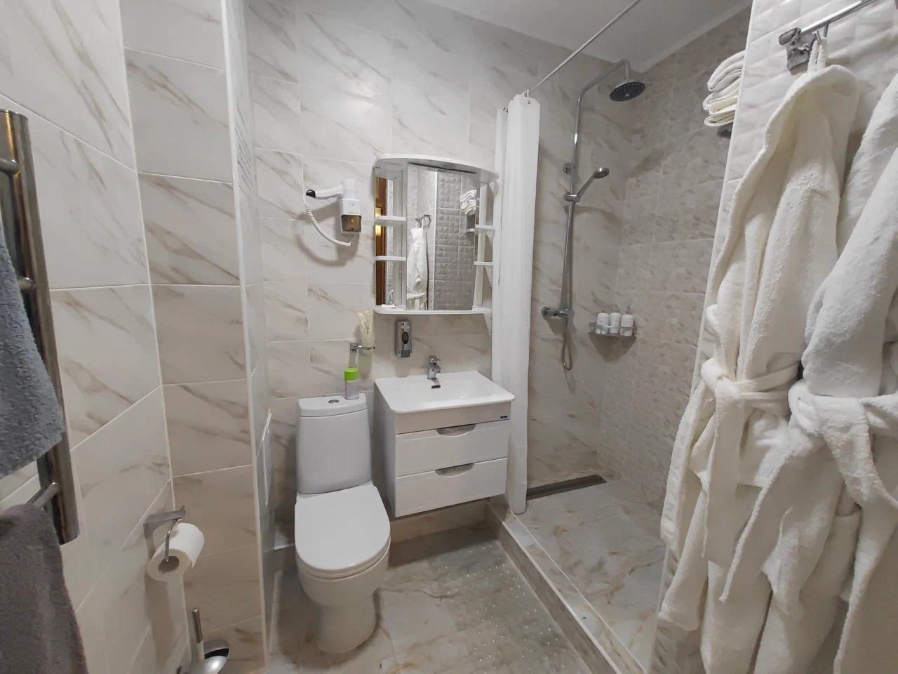 Все номера оснащены персональным санузлом с душем, в комнатах есть телевизор-ЖК и кондиционер, поддерживающий комфортную температуру в помещении.На территории оборудована мангальная площадка, желающие могут заказать домашнюю еду, также в числе удобств – сауна и крытый бассейн, где можно расслабиться после насыщенного дня, тренажерный зал, бильярд, настольный теннис и сеть wi-fi с хорошим покрытием.