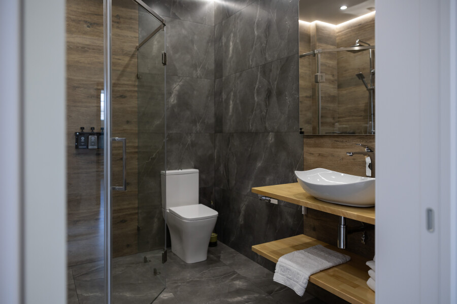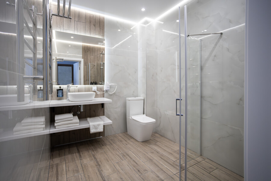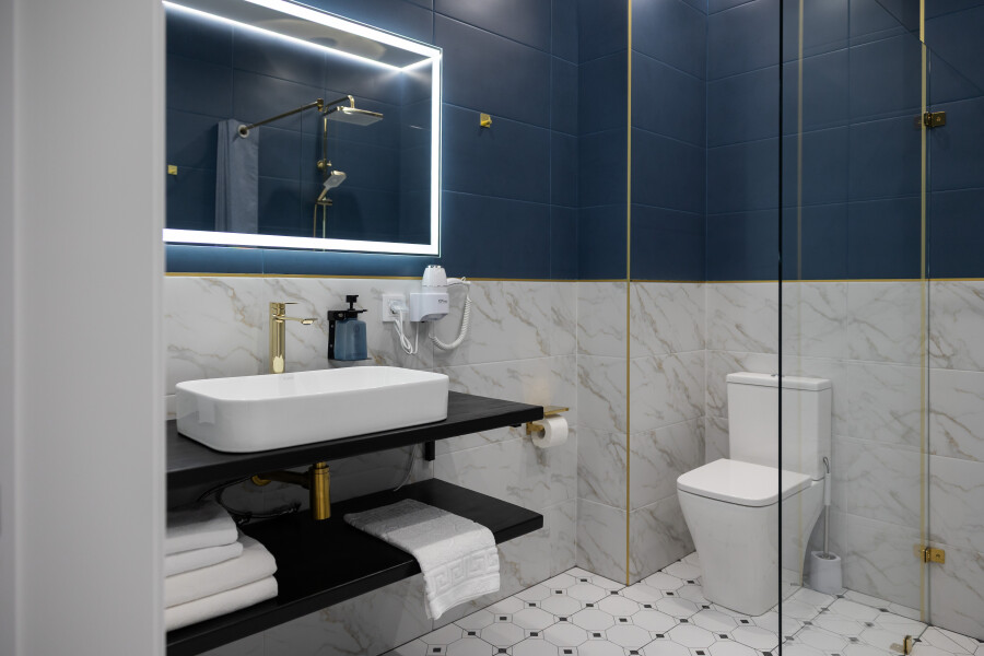 Санузел: с душевой кабиной, туалетные принадлежности, фен