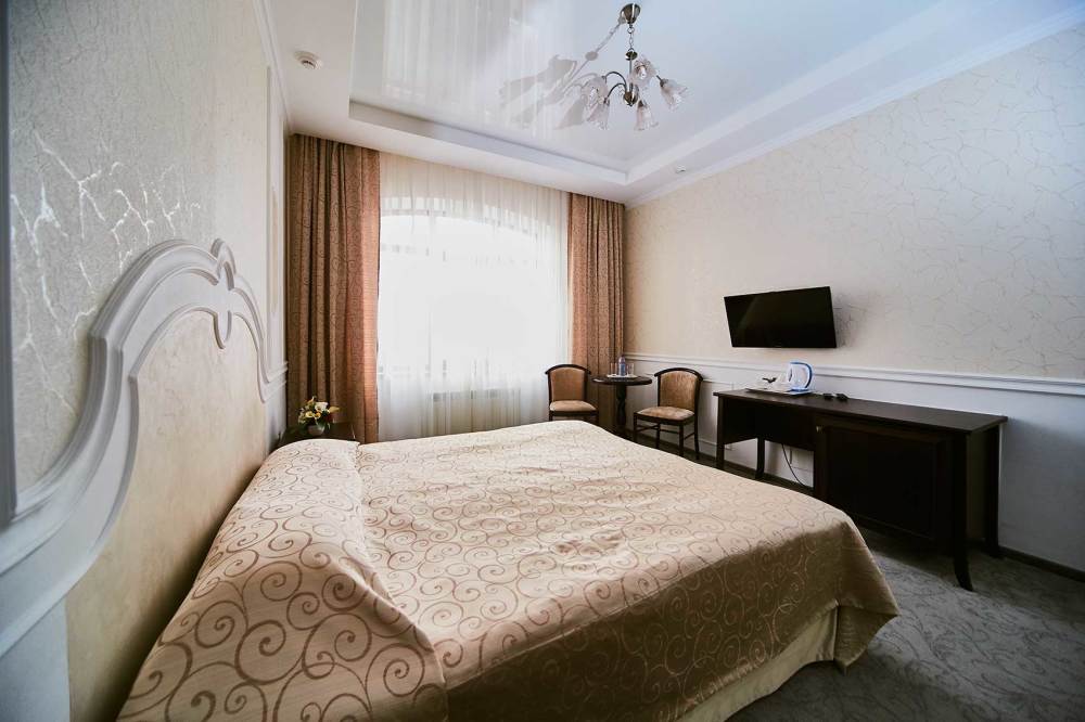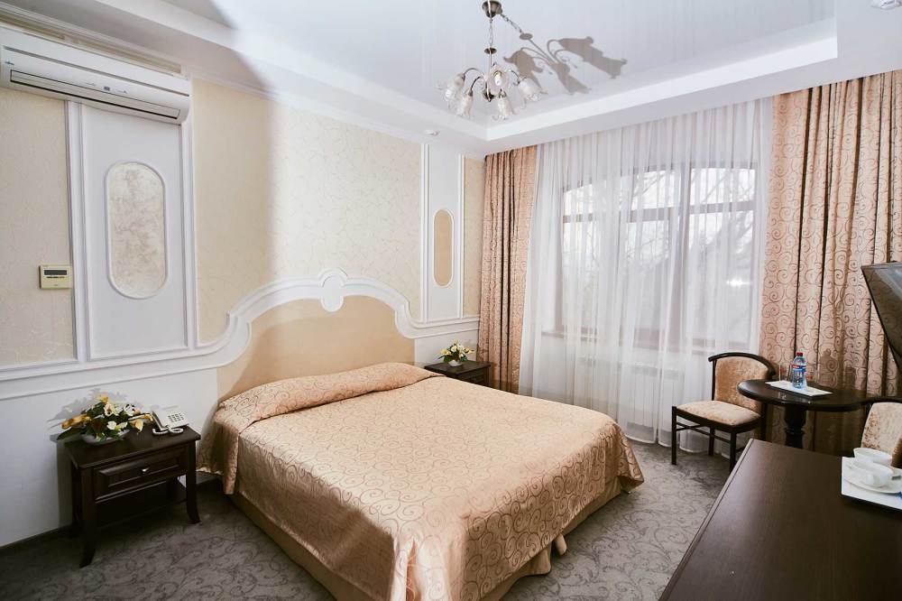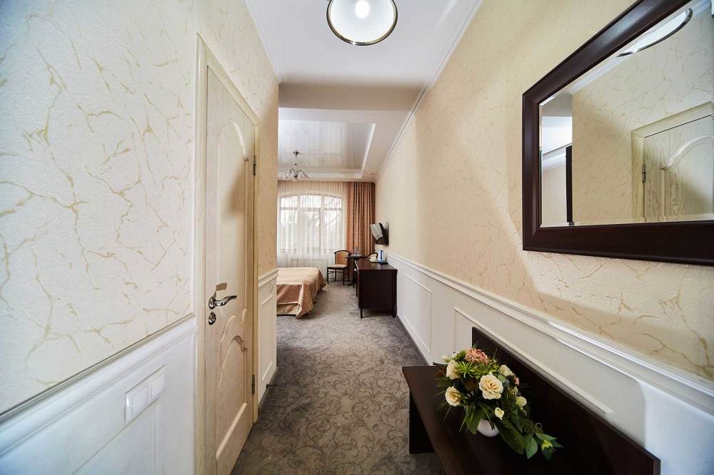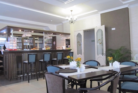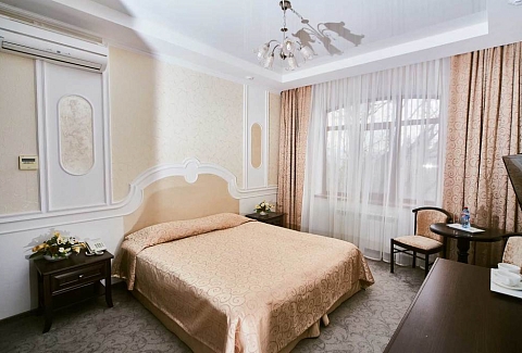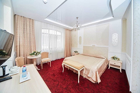 До железнодорожного вокзала - всего километр, а до аэропорта в Минеральных Водах — 53 км. Четырехэтажный корпус отеля (без лифта) занимает закрытую благоустроенную территорию в тихом и живописном квартале. Небольшой жилой фонд включает 26 номеров — Стандарт, Джуниор-Сьют и Люкс. Классические номера, выдержанные в приятной пастельной гамме, оснащены санузлом с душем, кондиционером и укомплектованы необходимой техникой и изящной мебелью. При отеле работает кафе, где гости могут перекусить в течение дня или заказать обеды, ужины. Завтрак входит в стоимость проживания и предоставляется по системе Шведский стол. В распоряжении отдыхающих хаммам и небольшой крытый бассейн, работающий круглогодично. Отдыхающим доступны услуги прачечной беспроводной интернет, возле корпуса организована парковка для автовладельцев. На ресепшене можно приобрести экскурсии по Приэльбрусью, заказать трансфер или вызвать такси.