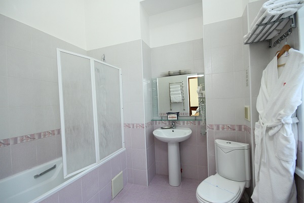 Санузел: с ванной, тапочки, туалетные принадлежности, фен, халат