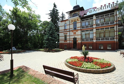 Четырехзвездочный пансионат «Шаляпин» расположен в курортной зоне города в пешей доступности от лечебного парка и главных достопримечательностей Кисловодска. За 15 минут можно дойти до Нарзанной галереи, Лестницы архитектора Леонидова, рядом — театр-музей Благодать, музей Дача Шаляпина, музей Солженицына. До железнодорожного вокзала — 5 минут езды, до международного аэропорта в Минеральных водах — 45 километров.Пансионат находится на закрытой охраняемой территории и включает в себя два трехэтажных старинных здания, где располагаются спальные номера и одноэтажный гостевой дом с мансардой — Дворянское гнездо.