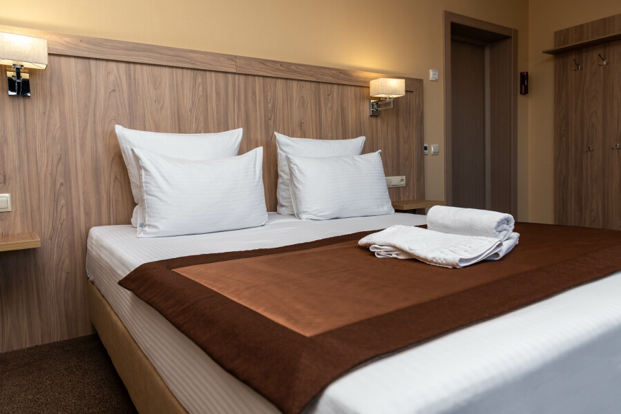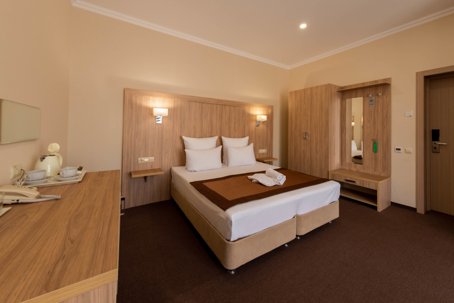 В номере: кровати односпальные /одна двуспальная кровать, стол, стулья, шкаф, кондиционер, мини-холодильник, сейф, телевизор, телефон, чайная станция