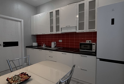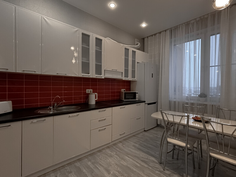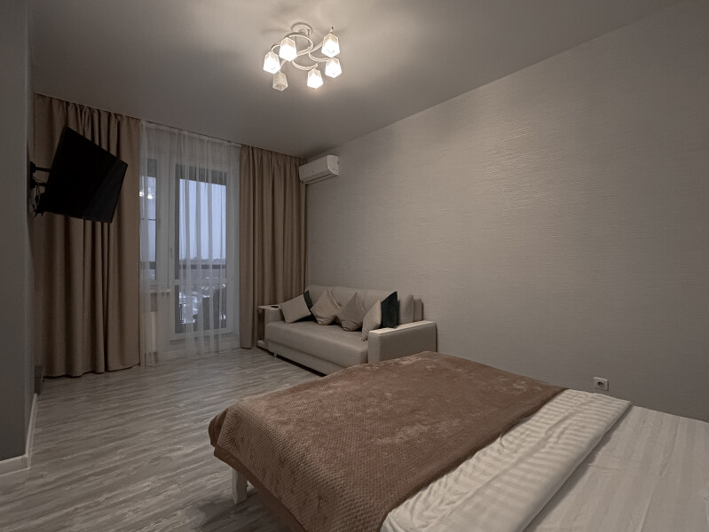 Апартаменты «АК на Абсалямова 19» расположены в 8 минутах езды от мечети Кул-Шариф. Рядом находятся загс «Казан», ТЦ «Тандем» и «Парк Хаус», аквапарк, несколько спортивных объектов.Однокомнатные апартаменты с современным интерьером в светлой гамме располагаются в новом жилом комплексе с хорошо благоустроенным закрытым двором и круглосуточным видеонаблюдением. Для отдыха постояльцев в комнате подготовлены 4 спальных места — кровать и диван.