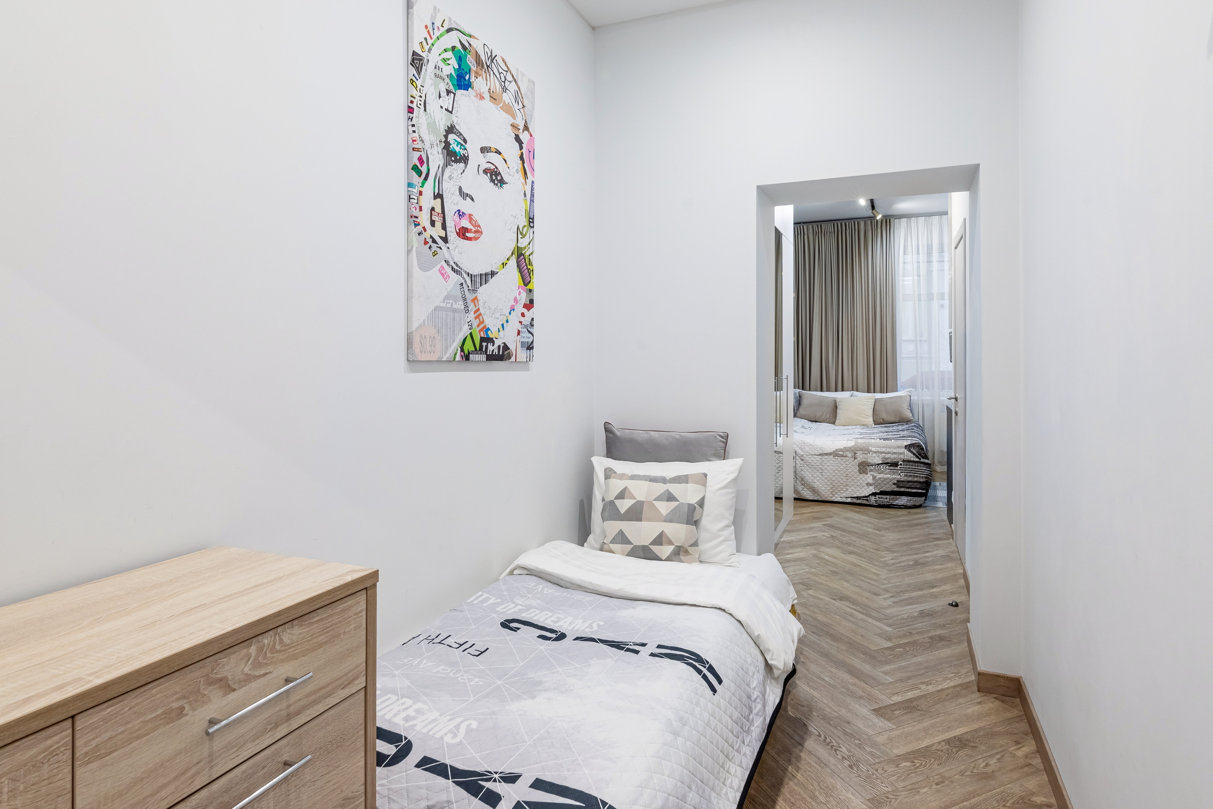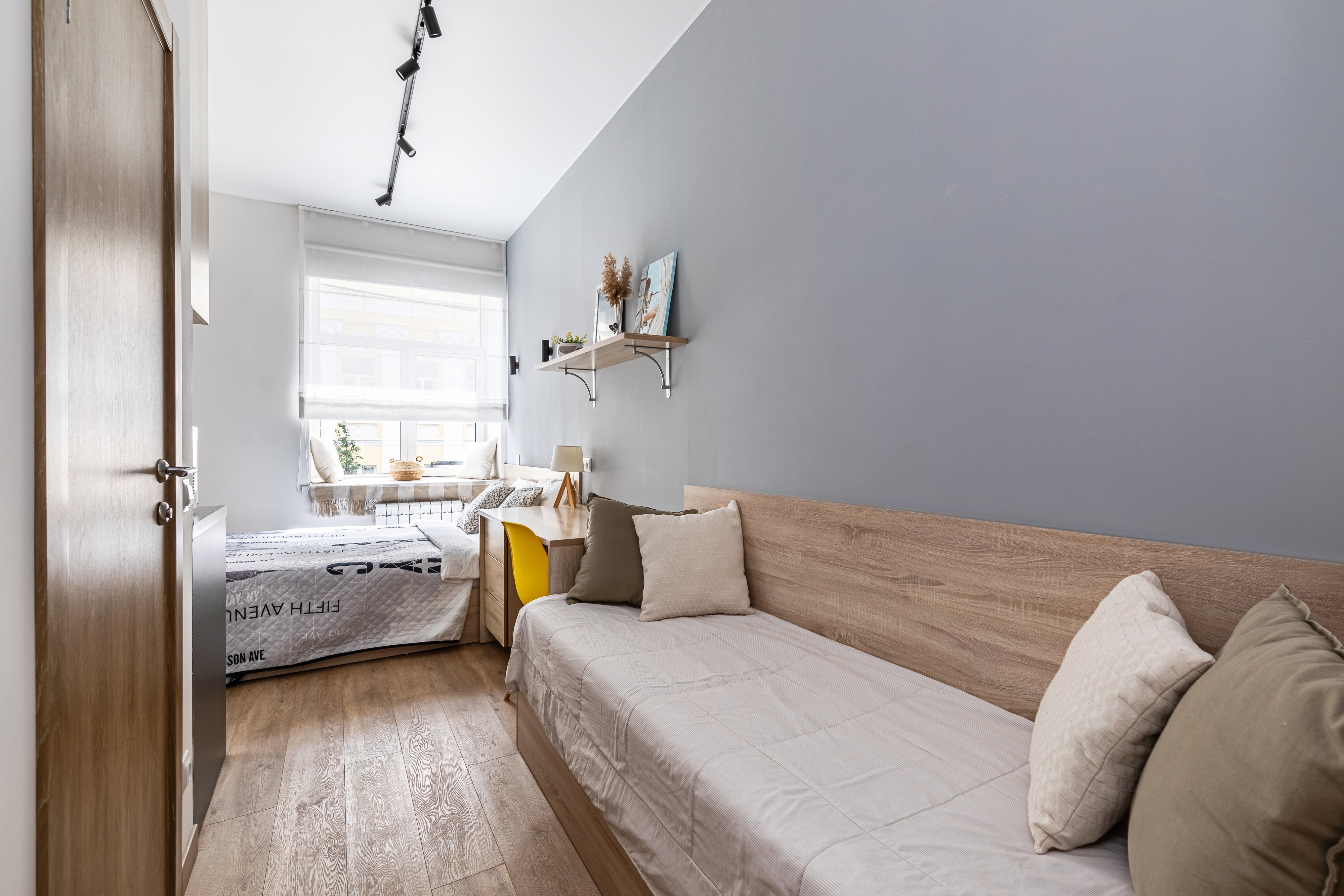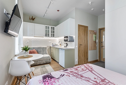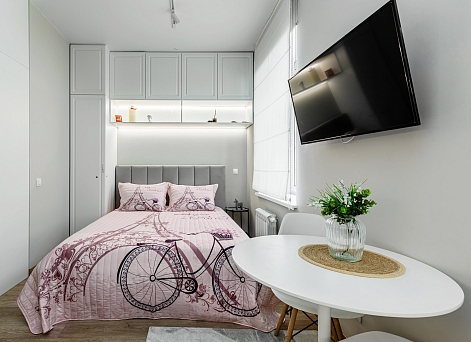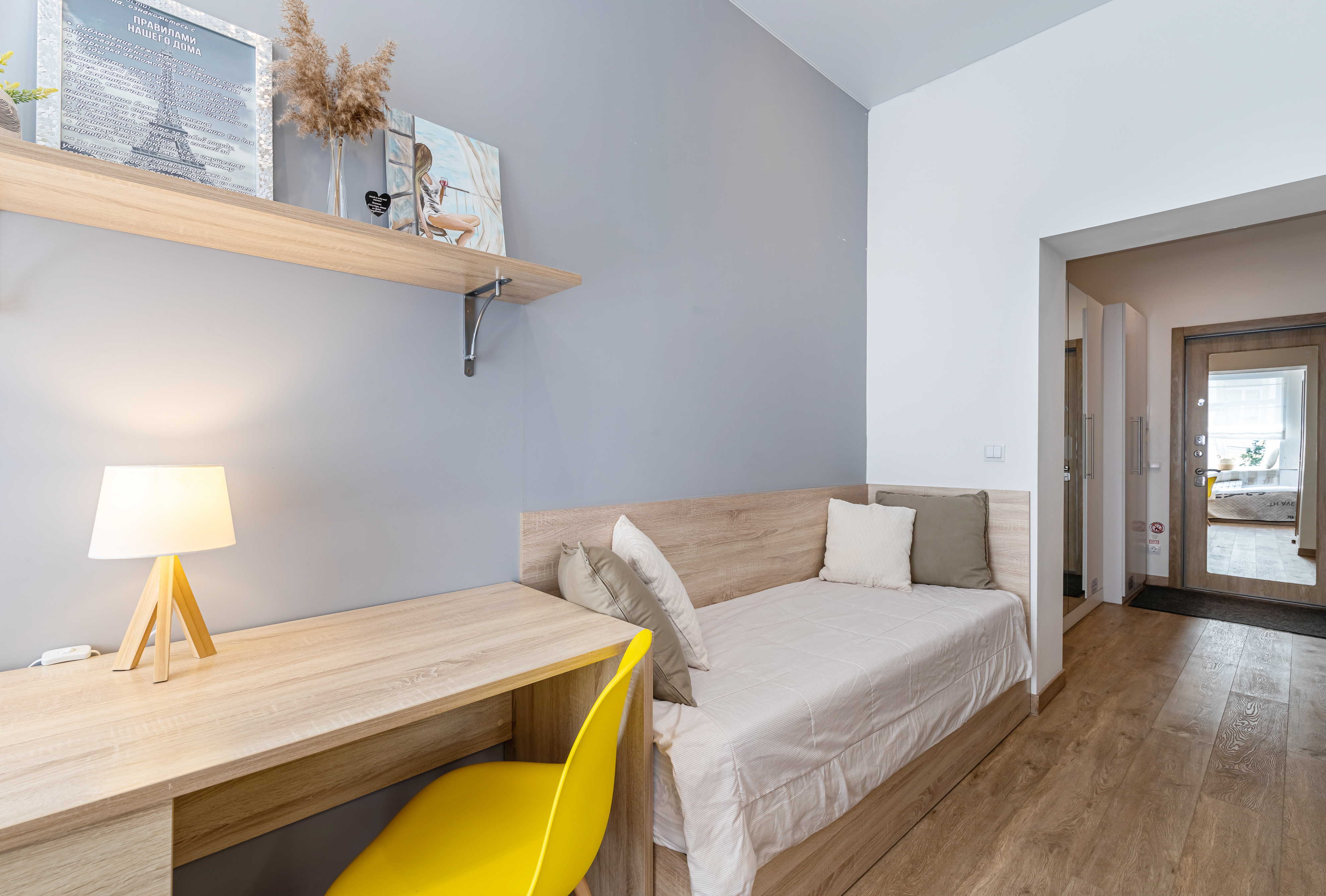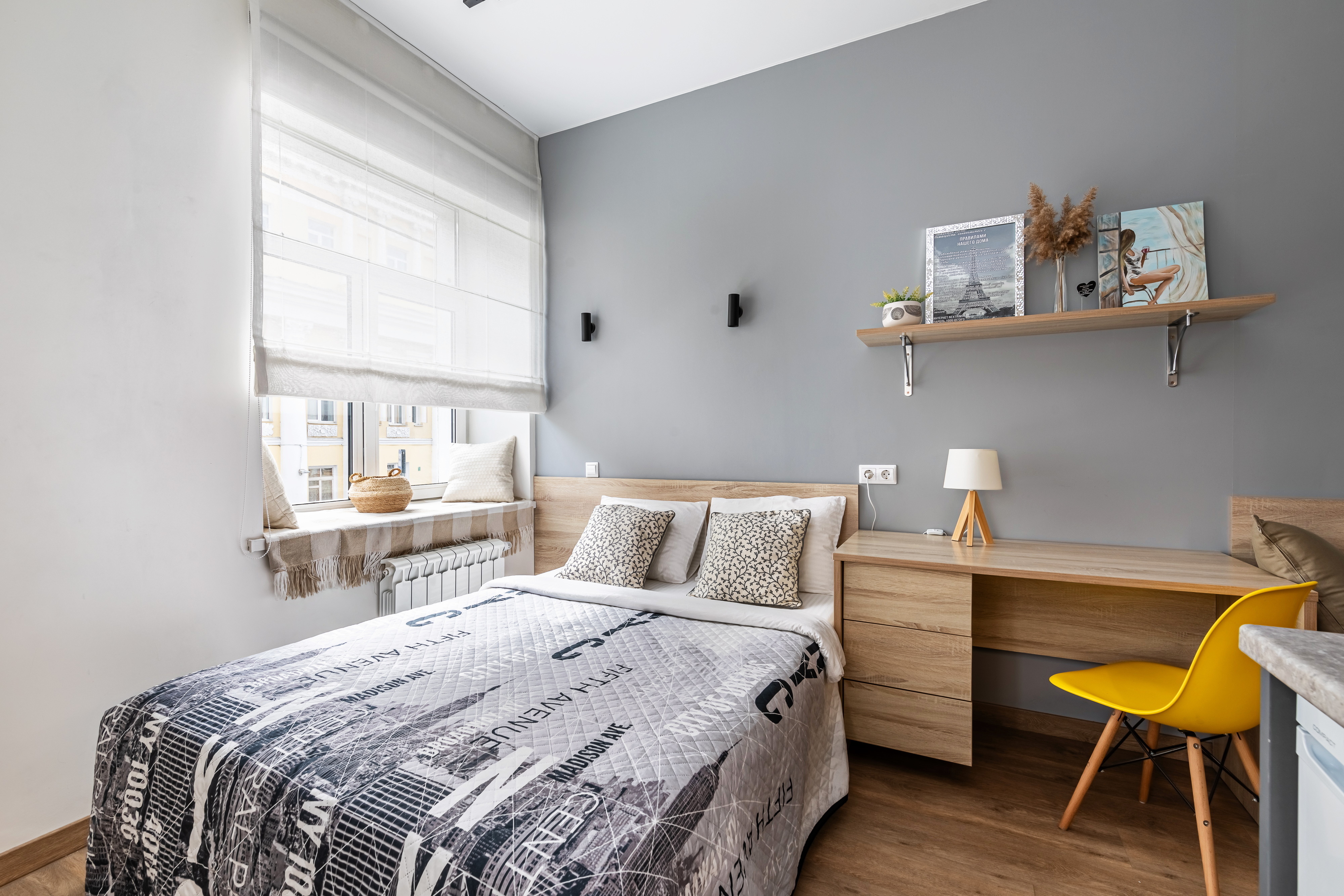 Интерьеры выполнены в современном дизайне с использованием спокойных тонов, создающих атмосферу уюта и расслабления. В распоряжении гостей — широкие двуспальные кровати, односпальные кровати, двухспальные диваны-кровати с ортопедическими матрасами, а также дополнительные подушки и одеяла. В каждом номере есть обеденный стол, вместительный шкаф или комод, вешалка, телевизор и кондиционер. Для работы предусмотрена отдельная зона в некоторых категориях. Кухня полностью оборудована всем необходимым для приготовления еды. В ванной комнате — душевая кабина, стиральная машина, фен, тапочки, зубные щётки с пастой и разнообразные туалетно-косметические принадлежности. На всей территории работает Wi-Fi.Это место создано для тех, кто ценит продуманность каждой детали и атмосферу настоящего гостеприимства. Здесь можно с комфортом разместиться, наслаждаясь тишиной и уютом, и при этом быть в самом сердце городской жизни, вдохновляясь видами и энергией Казани.