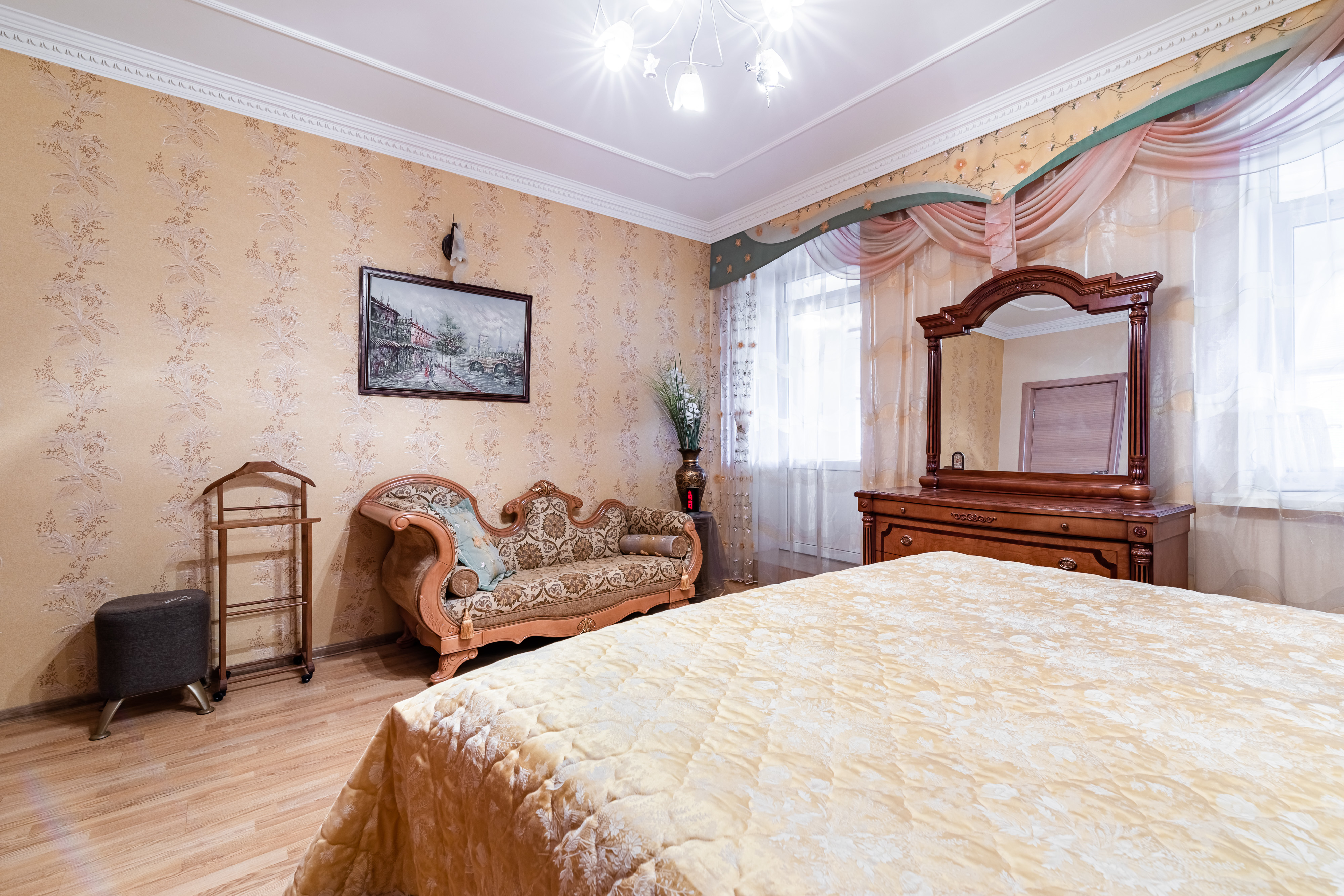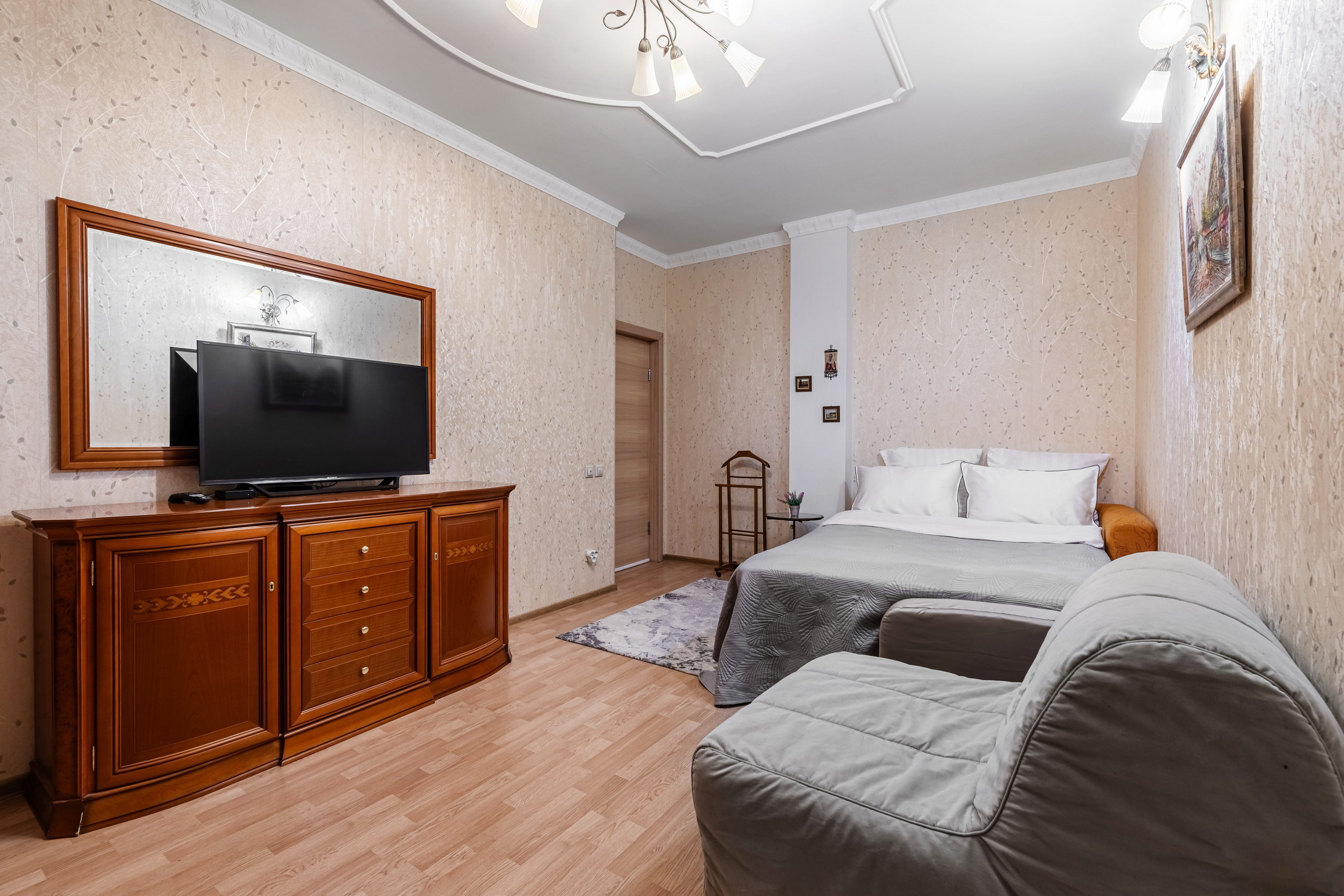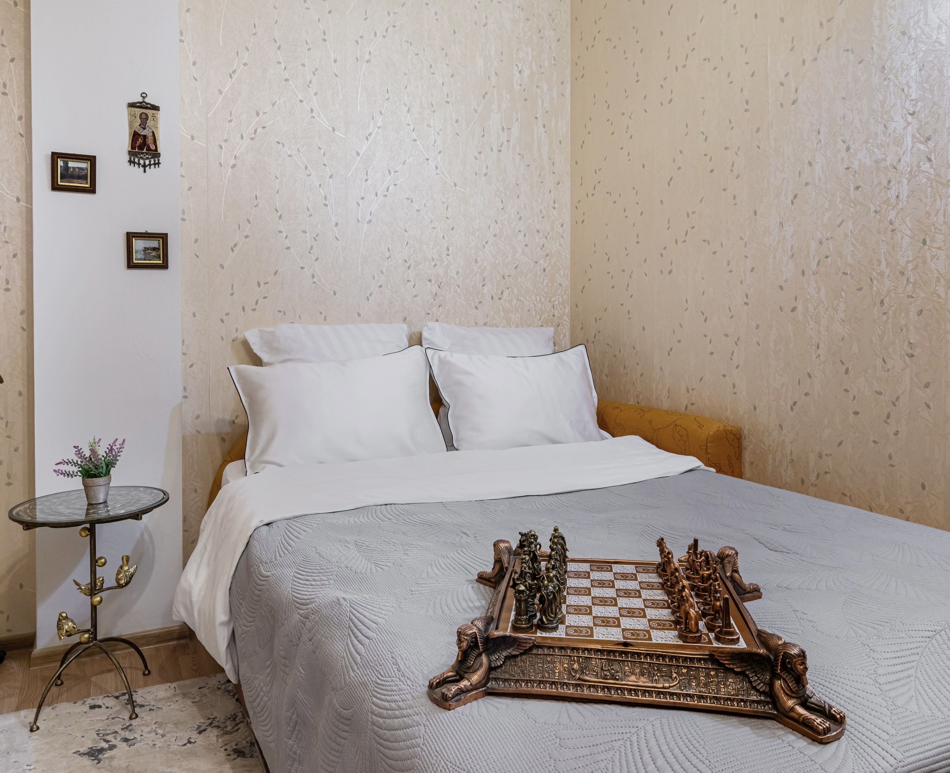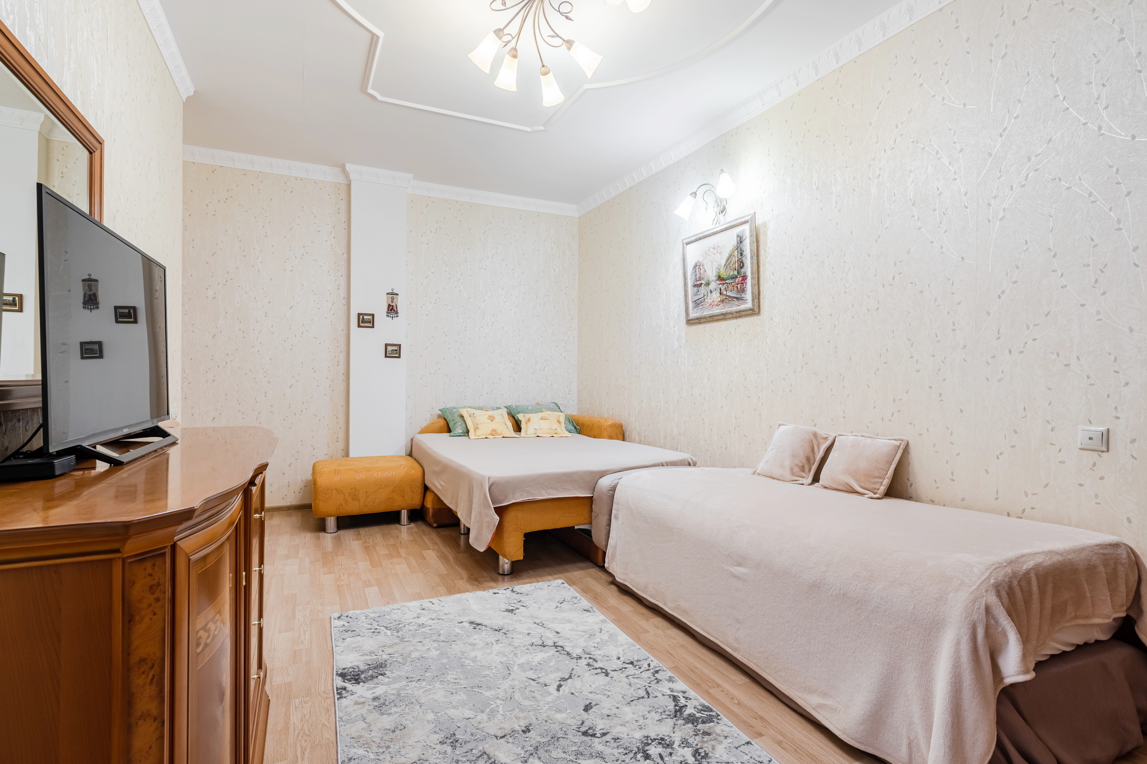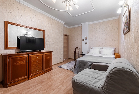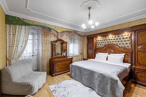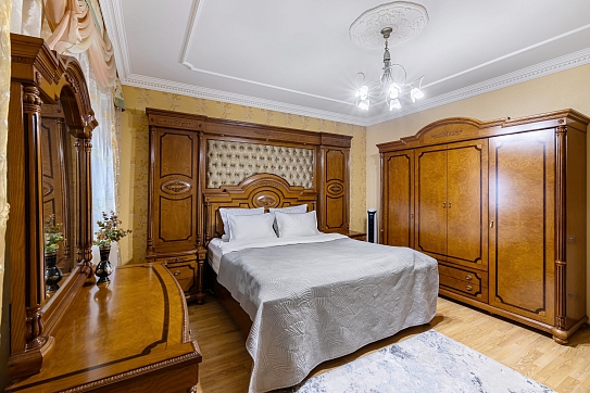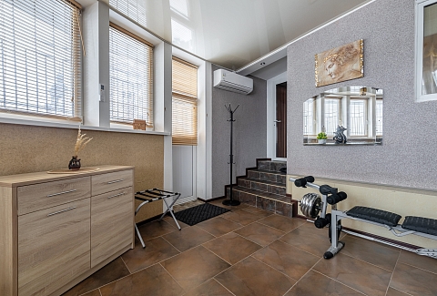 Станция метро «Кремлёвская» находится в нескольких минутах ходьбы. На территории обустроен уютный дворик, место для курения и собственная бесплатная парковка для гостей.Просторное пространство включает две отдельные спальни, кабинет, мини-библиотеку и лаунж-зону с камином, создающую особую атмосферу тепла и уюта. В спальнях — широкие двуспальные кровати и раскладные диваны-кровати, телевизоры, вместительные шкафы и дополнительные подушки с одеялами. Кухня полностью оборудована для приготовления еды: индукционная плита, микроволновая печь, холодильник, кофеварка, чайник, столовые приборы и полный набор посуды. Для гостей всегда готовы чай и кофе. В ванной комнате — душевая кабина, стиральная машина, фен, тапочки, зубные щётки с пастой и разнообразные туалетно-косметические принадлежности. Отдельным преимуществом является собственная сауна.Для активного отдыха в распоряжении гостей тренажёрный зал, беговая и велодорожка, а также настольный теннис. Во всех помещениях поддерживается комфортный микроклимат благодаря кондиционерам и вентиляторам с ионизацией воздуха. Это место создано для тех, кто ценит безупречный сервис, продуманность каждой детали и возможность жить в самом сердце города, наслаждаясь видами, комфортом и уединением. Здесь каждый гость чувствует себя по-настоящему особенным.