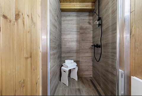 Санузел: с душем, тапочки, туалетные принадлежности, фен