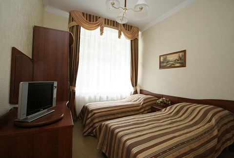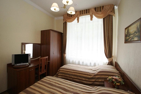 В номере: кровати односпальные, столик туалетный, шкаф, мини-холодильник, телевизор ЖК, телефон
