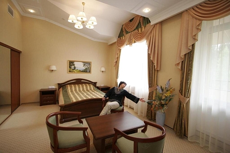 В номере: гардеробная, кровать двуспальная, столик журнальный, столик кофейный, кондиционер, мини-холодильник, сейф, телевизор ЖК, телефон