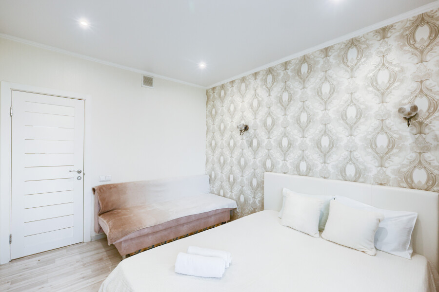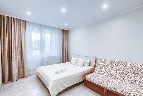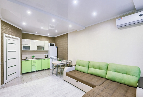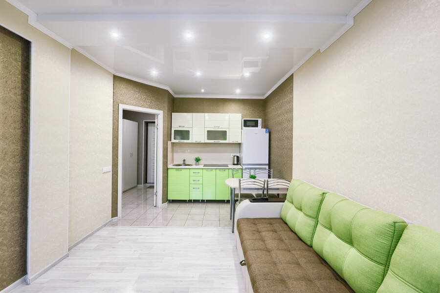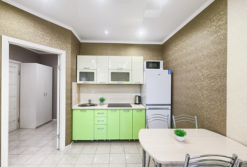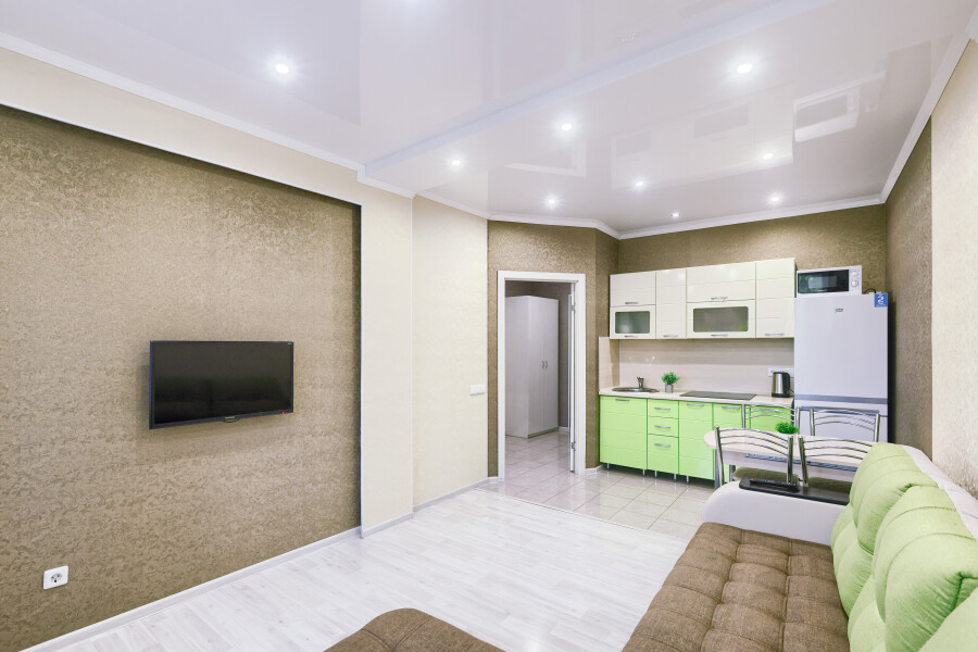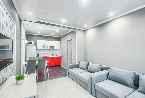 Сеть апартаментов «Apartment De Luxe» расположена в спальном районе Казани. В пешей доступности находятся набережная вдоль реки Казанки, смотровая площадка у центра семьи «Казан», несколько зеленых зон. Прогулка к башне Сююмбике и другим достопримечательностям в центре татарской столицы займет около получаса.Апартаменты размещены в современном жилом комплексе с круглосуточной охраной, детскими площадками и вместительными парковками во дворах.