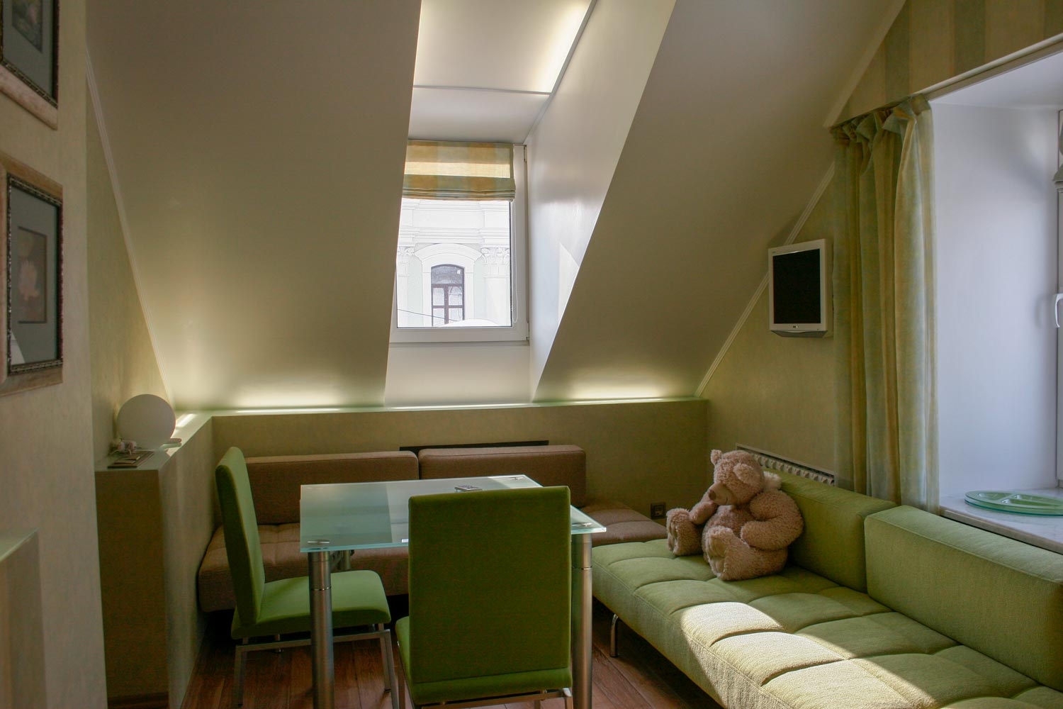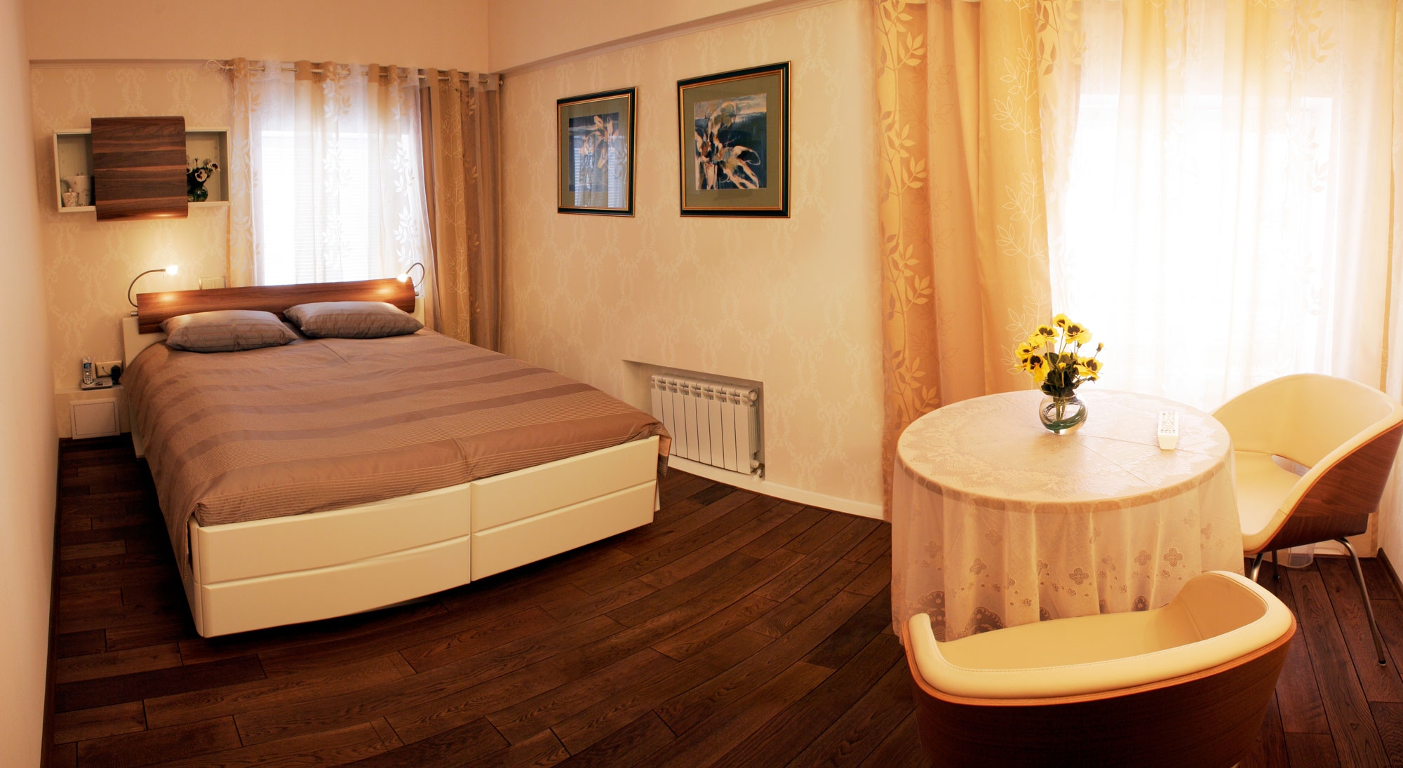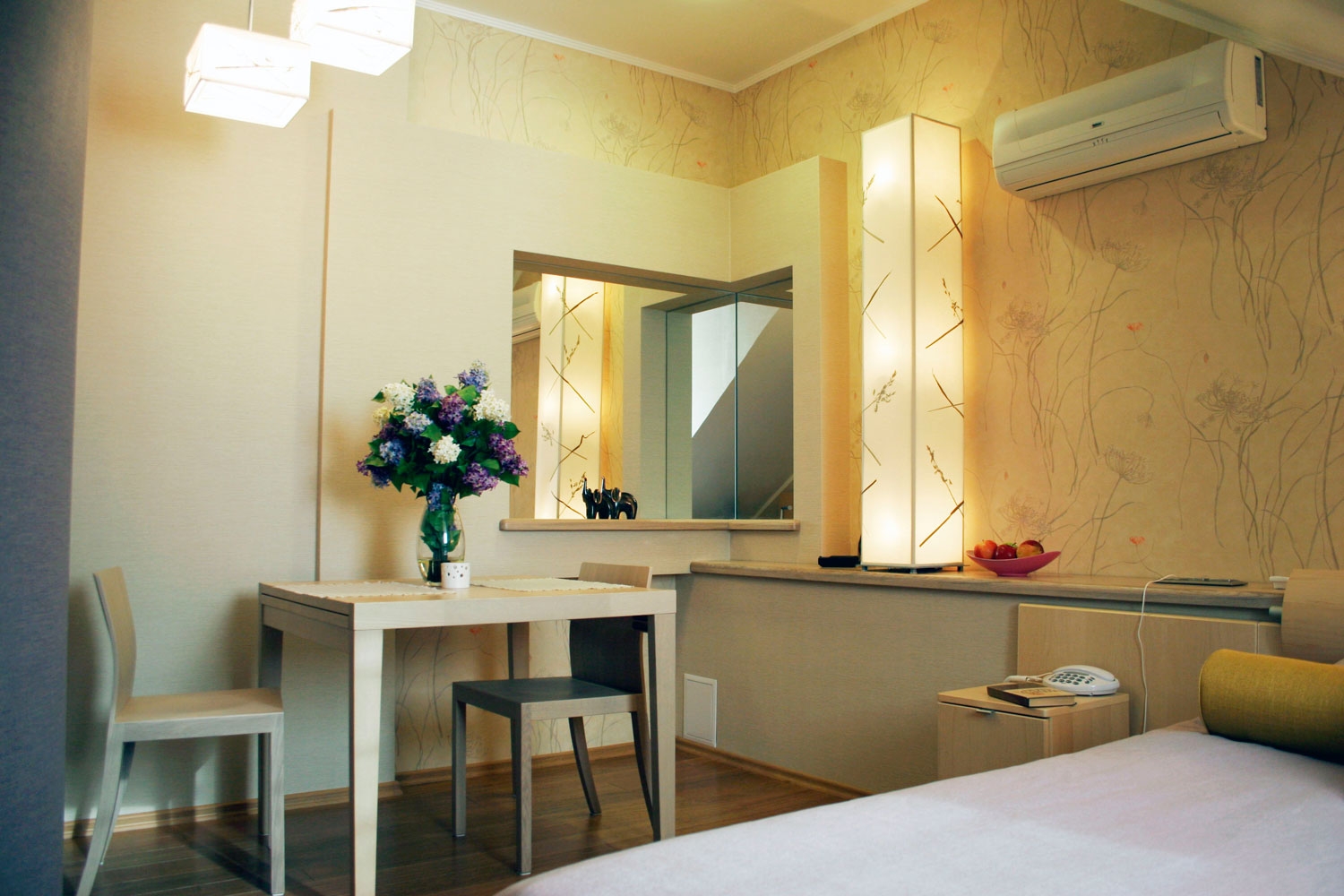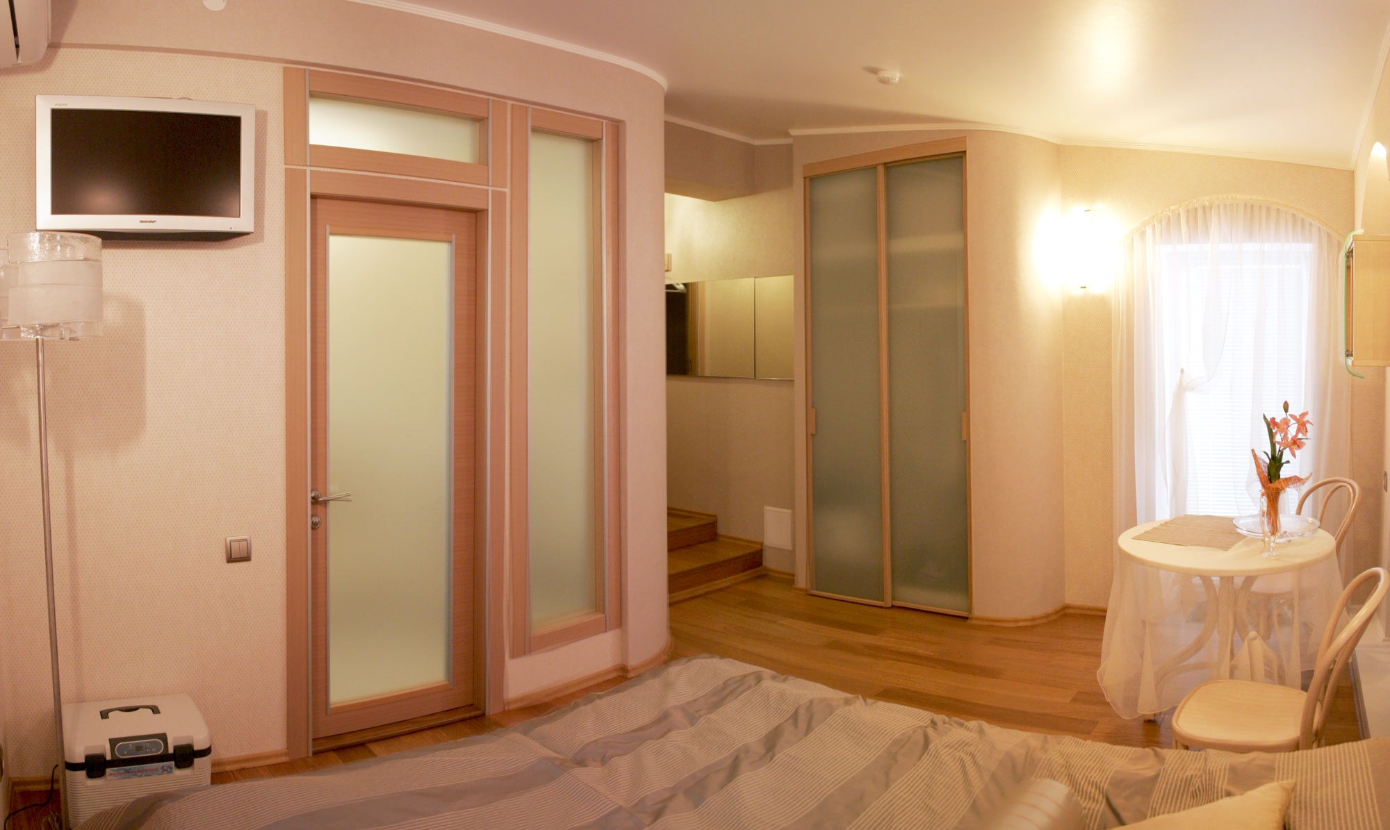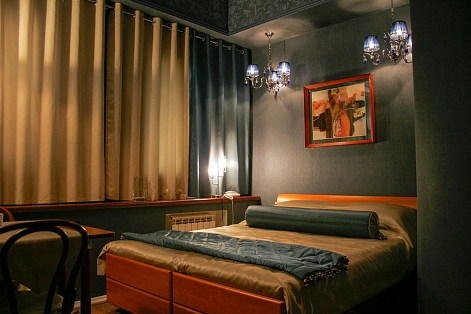 В номере: вешалка, зеркало, кровати односпальные /одна двуспальная кровать, стол, стулья, шкаф, кондиционер, мини-холодильник, сейф, телевизор