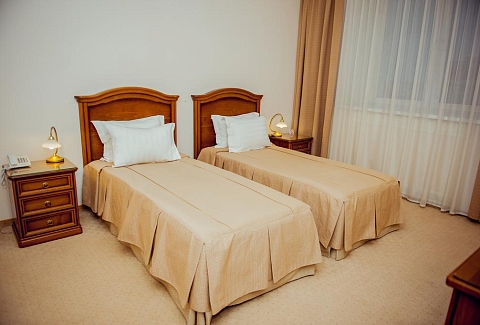 В номере: вешалка, зеркало, кровати односпальные, набор мягкой мебели, прикроватные тумбочки, столик журнальный, шкаф, кондиционер, мини-холодильник, сейф, телевизор, телефон