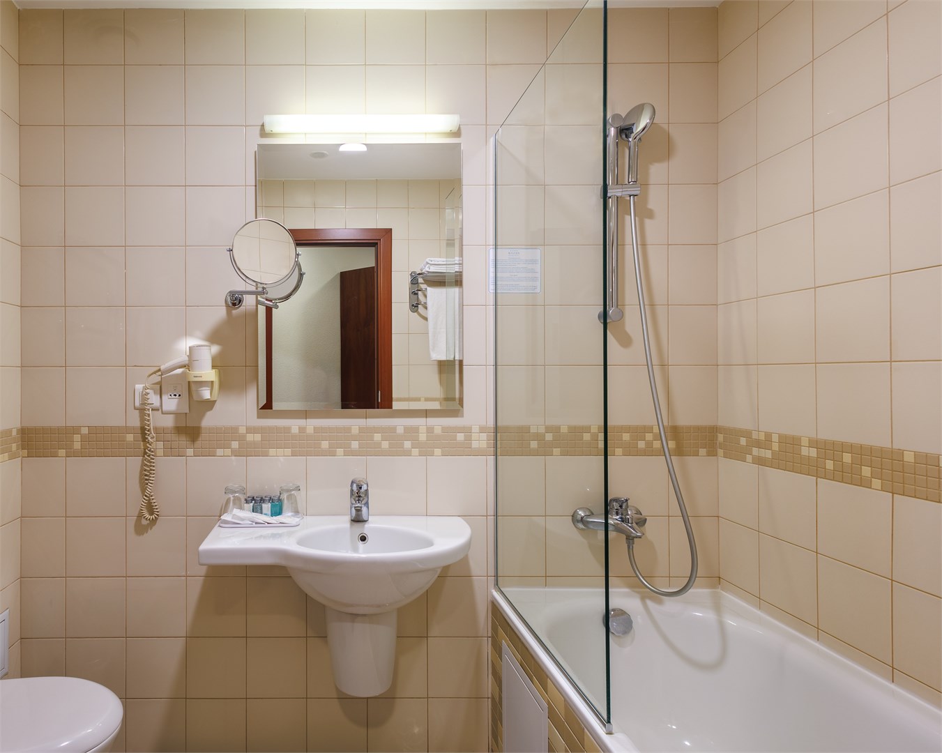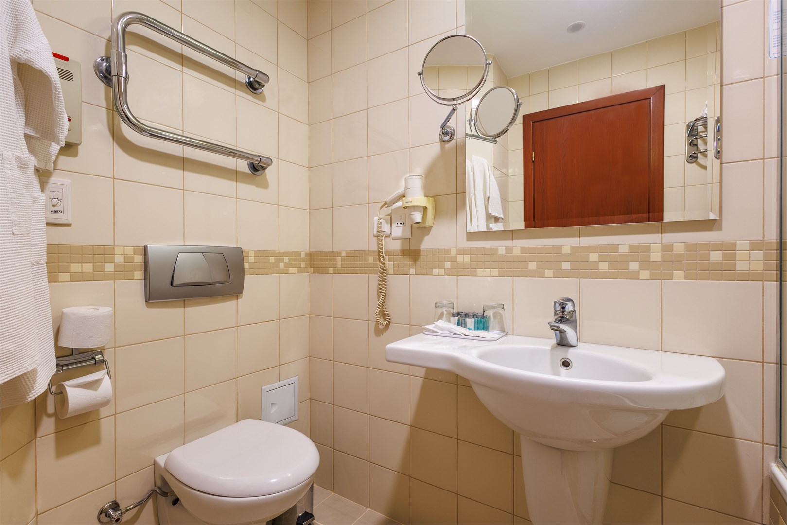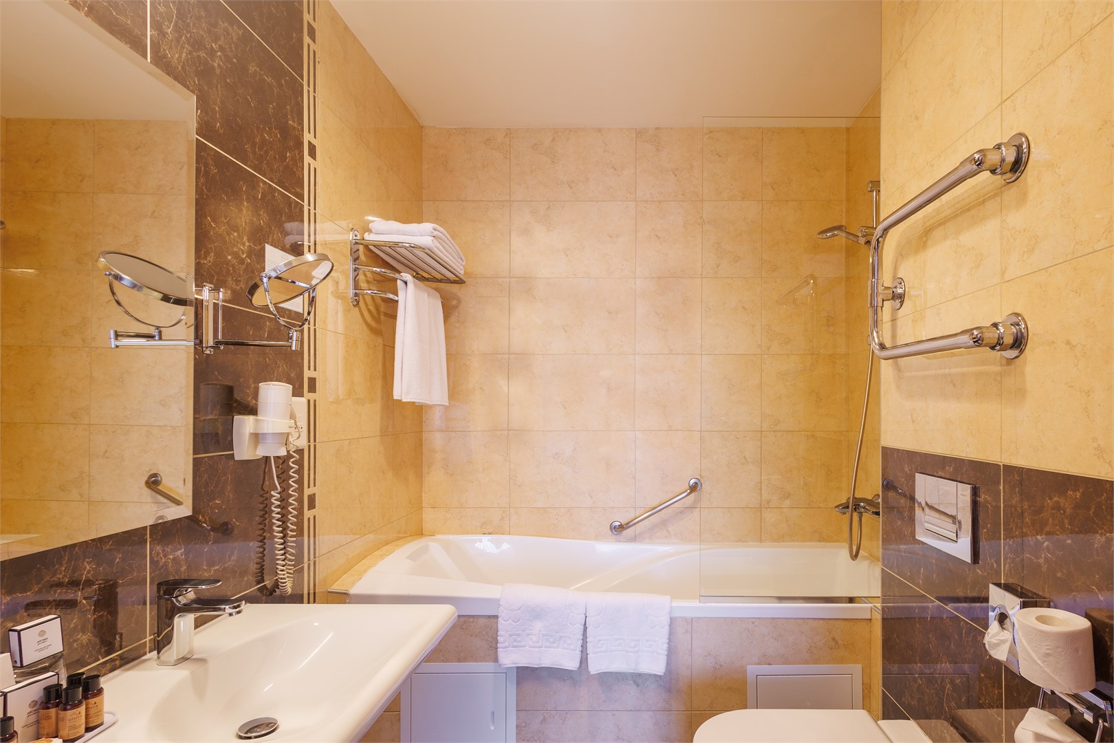 Санузел: с ванной, туалетные принадлежности, фен