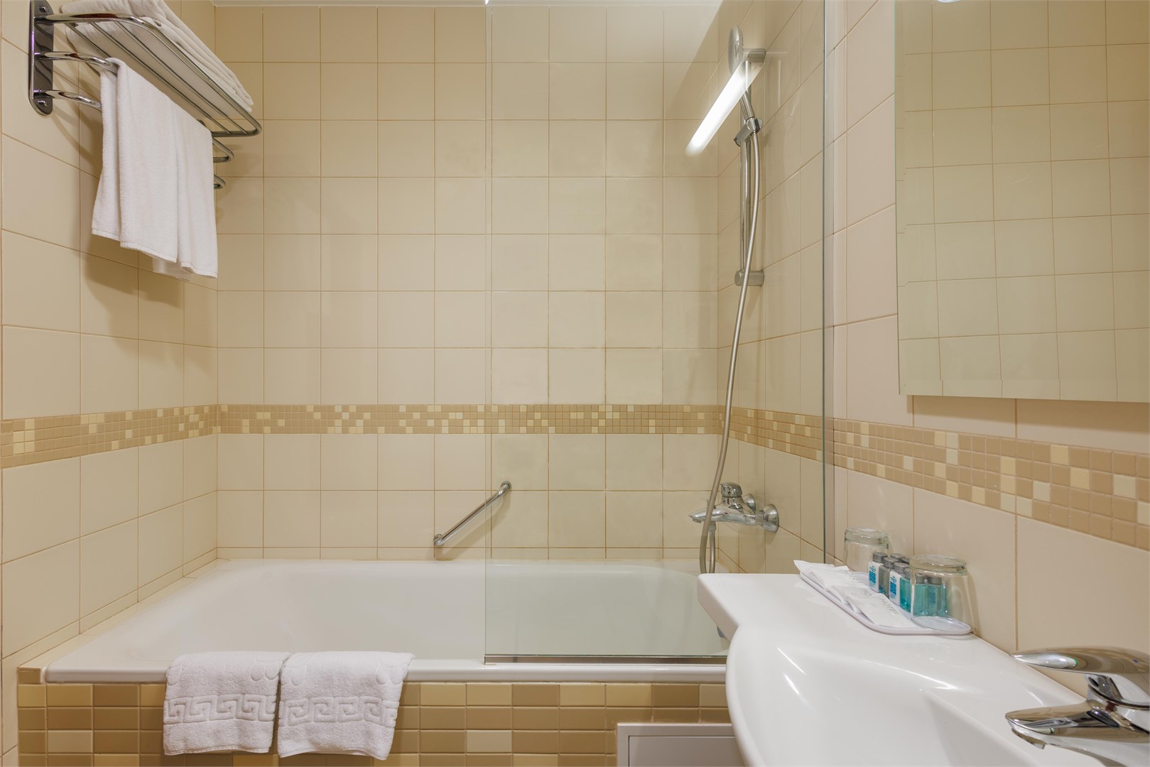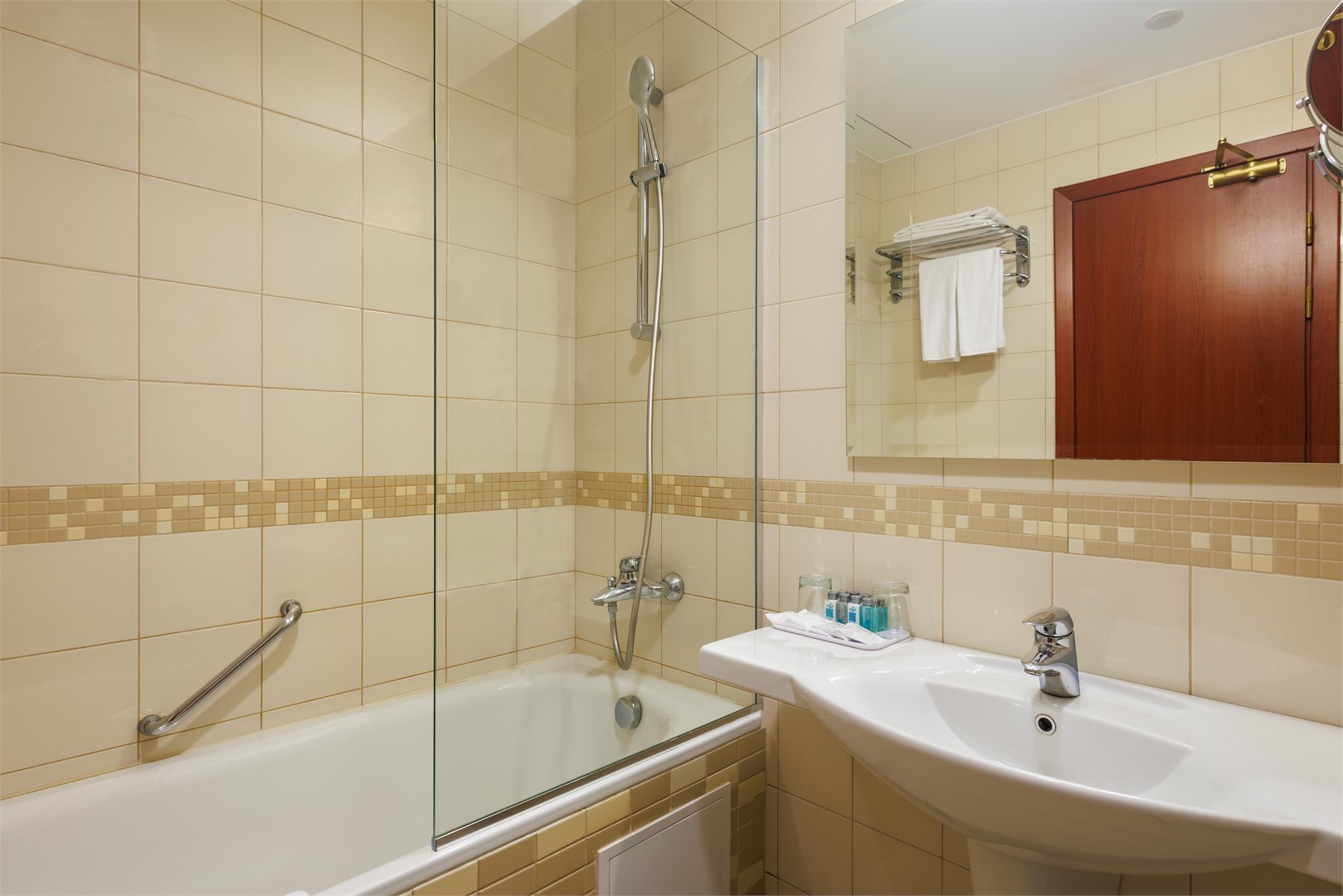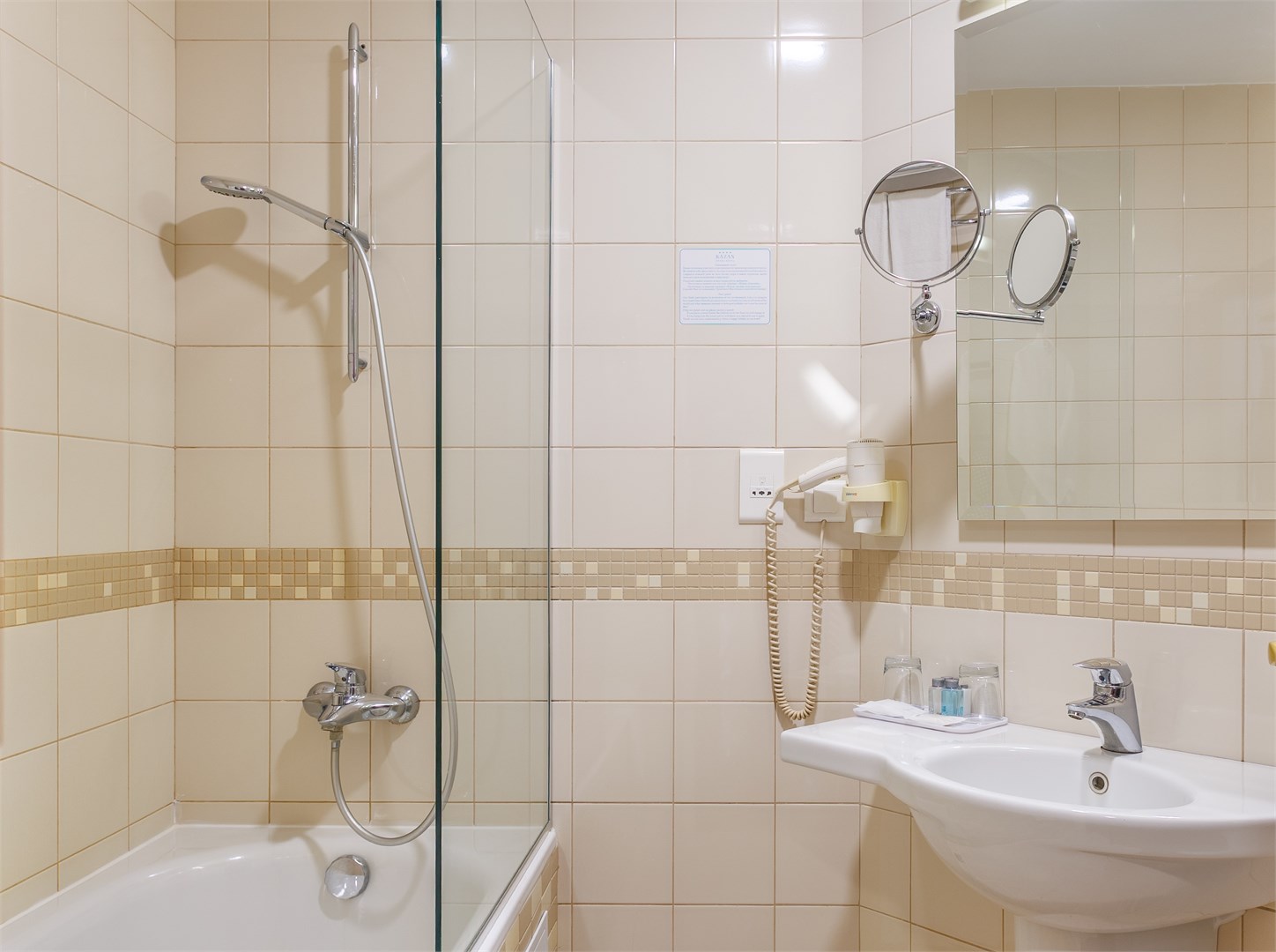 Санузел: с ванной, туалетные принадлежности, фен