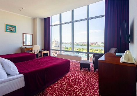 Конференц – возможности отеля открывают деловые перспективы для потенциальных клиентов: конференц-залы на 250 чел., 80 чел., переговорная на 20 чел, ресторан для организации банкетов. Сауны с мини-бассейнами и тренажерный зал помогут гостям отдохнут после напряженных деловых будней. Расположение гостиницы в самом центре города позволяет в короткое время добраться до таких памятников истории, архитектуры и культурных учреждений, как Казанский Кремль, мечеть Кул-Шариф, Богоявленская церковь, Государственный Академический Театр Оперы и Балета, Качаловский театр. Рядом находится ночной клуб "Арена", удобная автостоянка. Улица Петербургская является органичным продолжением ул. Баумана. От гостиницы до ж/д вокзала за 5 минут можно добраться на такси.