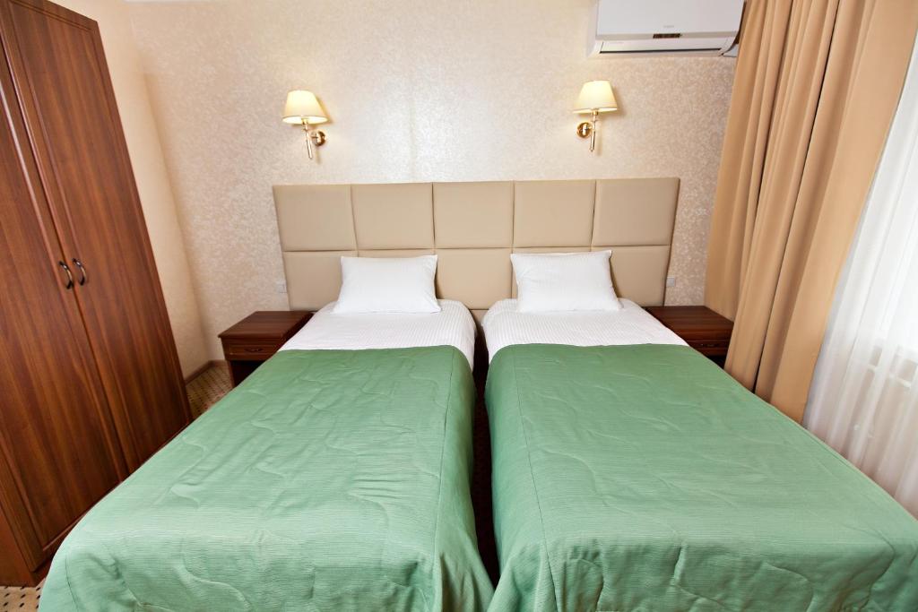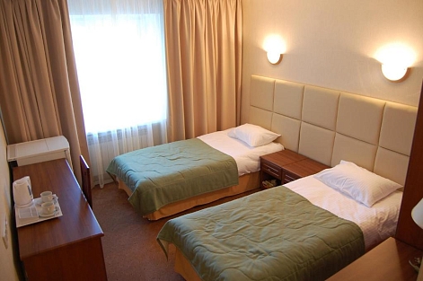 Отель разместился в 9-ти этажном здании, оснащенном лифтами. Жилой фонд, рассчитанный на размещение 176 человек, предлагает гостям Апартаменты с мини-кухней, номера категории Стандарт и Бизнес с собственными ванными комнатами, и блочные номера с общим санузлом. В каждом из них имеется телевизор, холодильник, электрочайник, двуспальная или односпальные кровати. По утрам постояльцев ожидают завтраки, в кафе на первом этаже отеля. На всей территории гостиницы подключена сеть wi-fi, отдыхающим доступна аренда дополнительной бытовой техники.