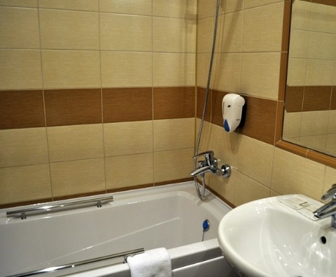 В номере: вешалка, зеркало, кровать полутороспальная, прикроватная тумбочка, стол, стул, шкаф, кондиционер, мини-холодильник, сейф, телевизор, телефон, чайный набор посуды, электрочайник