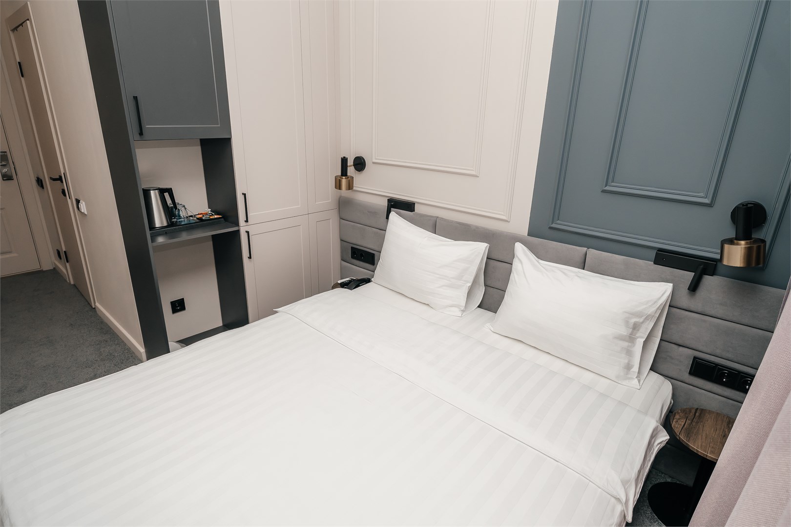 Все 15 номеров гостиницы представлены тремя категориями комфорта — стандарт, улучшенный и премиум-класс, каждое помещение отличается индивидуальным стилем оформления и продуманностью деталей. Интерьеры наполнены мягкими пастельными оттенками, способствующими отдыху и полной релаксации после насыщенных прогулок по городу.Кроме эстетики и атмосферы, здесь обеспечивается первоклассный сервис, обеспечивающий комфорт каждого гостя. Персонал оказывает внимательное обслуживание в течение всего периода пребывания, включая круглосуточный доступ к бесплатному высокоскоростному Интернету, что позволит оставаться на связи с родными или вести рабочие дела даже вдали от дома. К тому же завтрак можно заказать прямо в номер, обеспечивая идеальное начало дня перед новыми открытиями и впечатлениями от прогулки по прекрасным улочкам Казани.