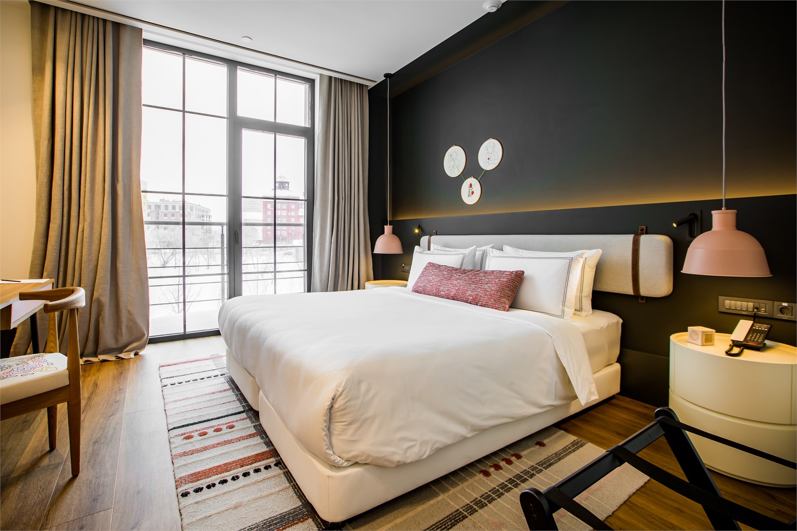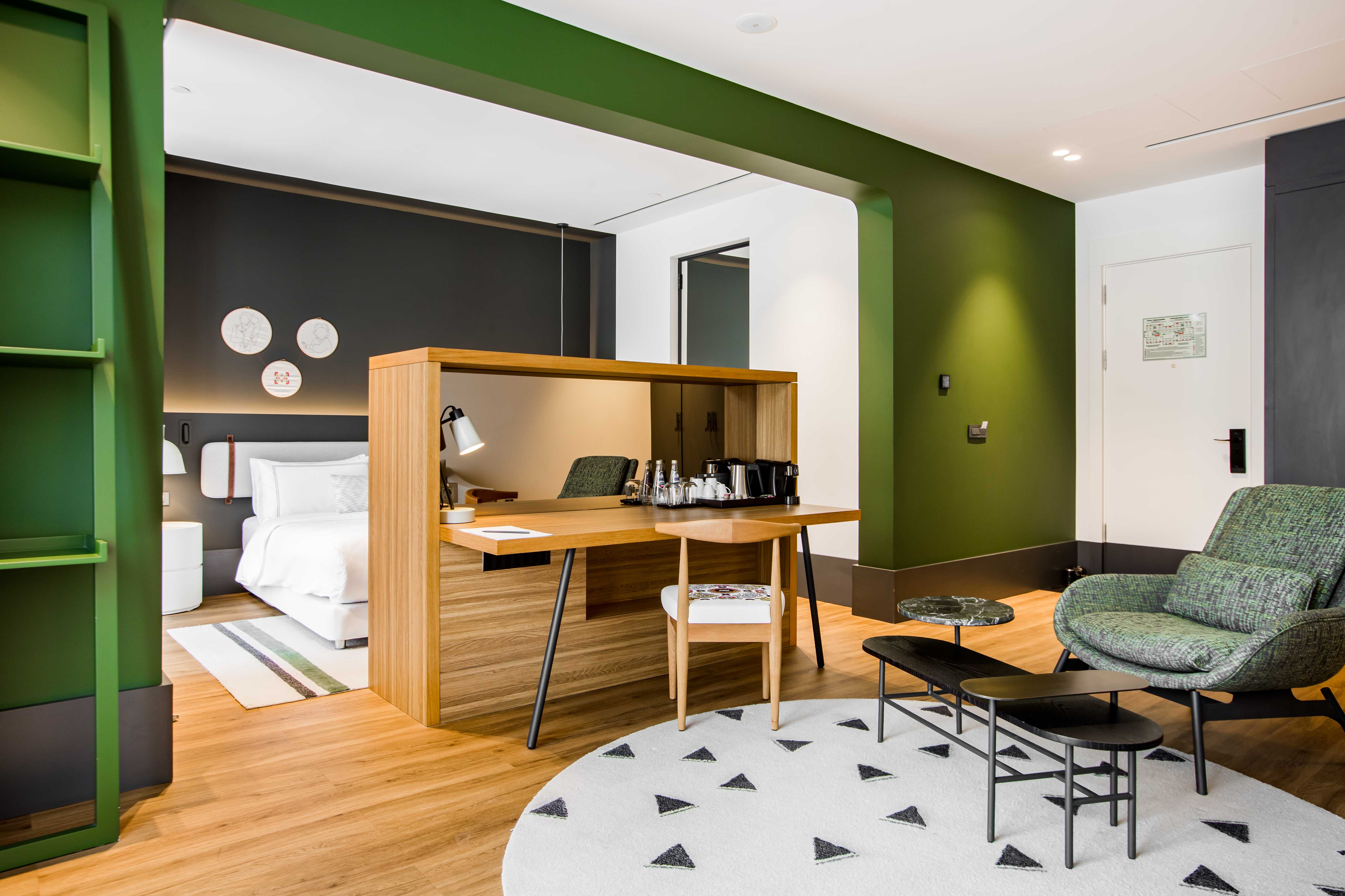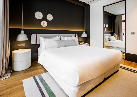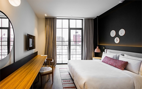 Расстояние до аэропорта составляет 25 километров. Добраться до железнодорожного вокзала можно за 10 минут на автомобиле. Номерной фонд разного уровня комфорта и вместимости расположился в 5-этажном здании. В комнатах установлена удобная мебель для отдыха, есть места для хранения одежды. К услугам гостей телевизор, кондиционер, мини-холодильник, сейф, электрический чайник. Санузел индивидуальный, с душем, полотенцами, туалетными принадлежностями и феном. На территории отеля работают несколько ресторанов и баров. Доступен заказ еды и напитков в номер. Гости имеют возможность расслабиться и оздоровиться в спа-центре с бассейном, сауной и тренажерным залом. В качестве дополнительной услуги можно воспользоваться трансфером. Для личного транспорта гостей предусмотрена парковка. Существуют номера для маломобильных гостей, а также вся инфраструктура располагает для передвижения на колясках.